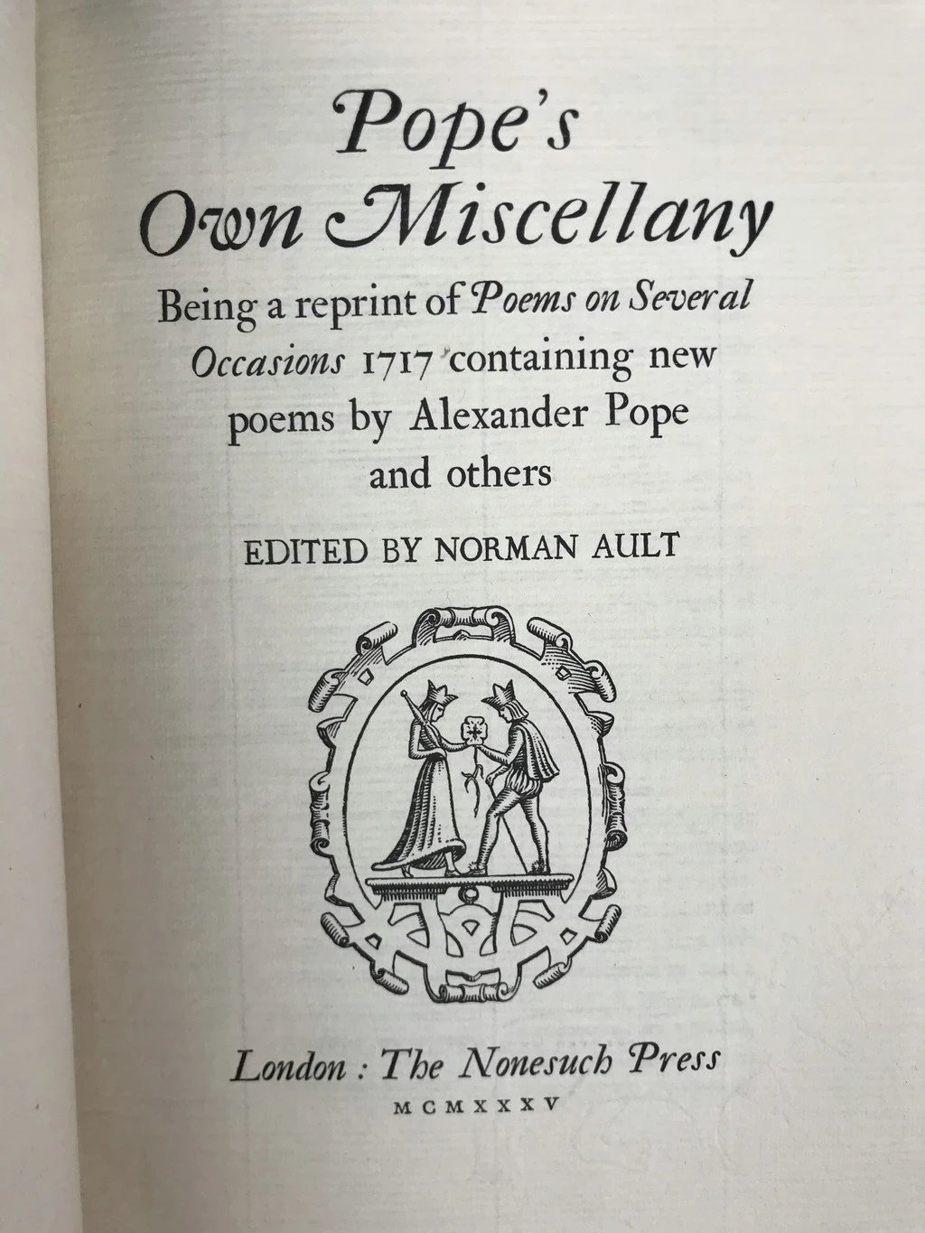 NonesuchPress限量750册编号5!1935年 蒲柏自选杂诗集 漆布精装16开