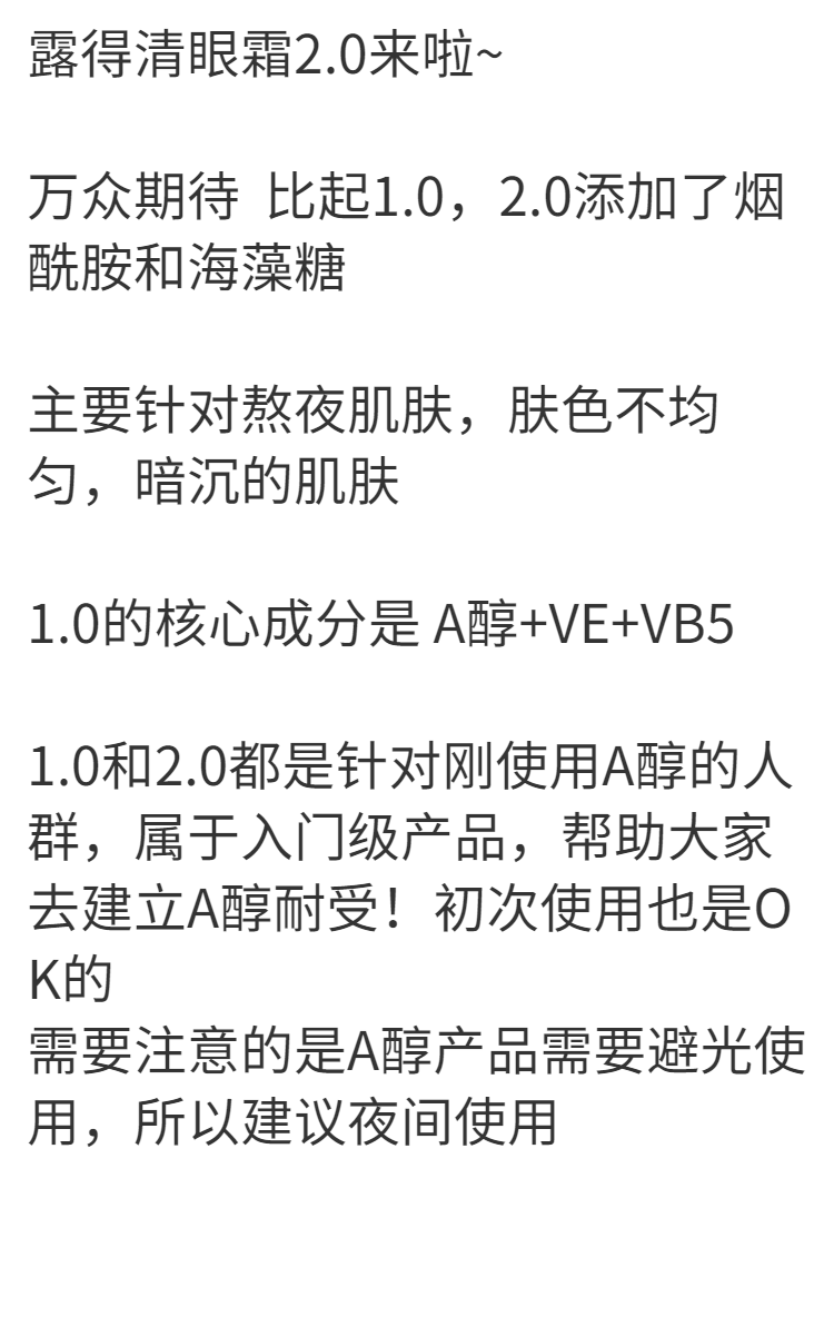 【爆款超低价预售 急单慎拍】露得清 2.0新升级 维A醇透亮水嫩眼霜视黄醇淡纹黑眼圈