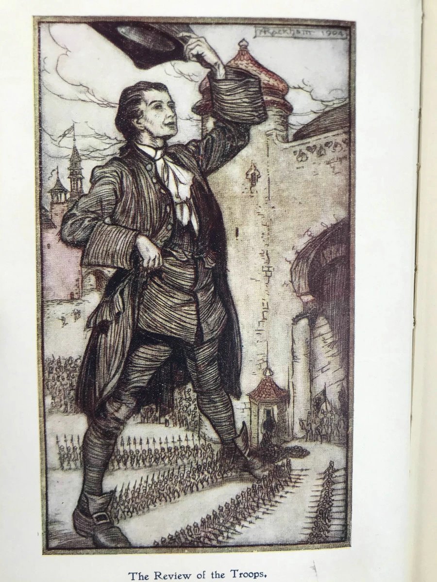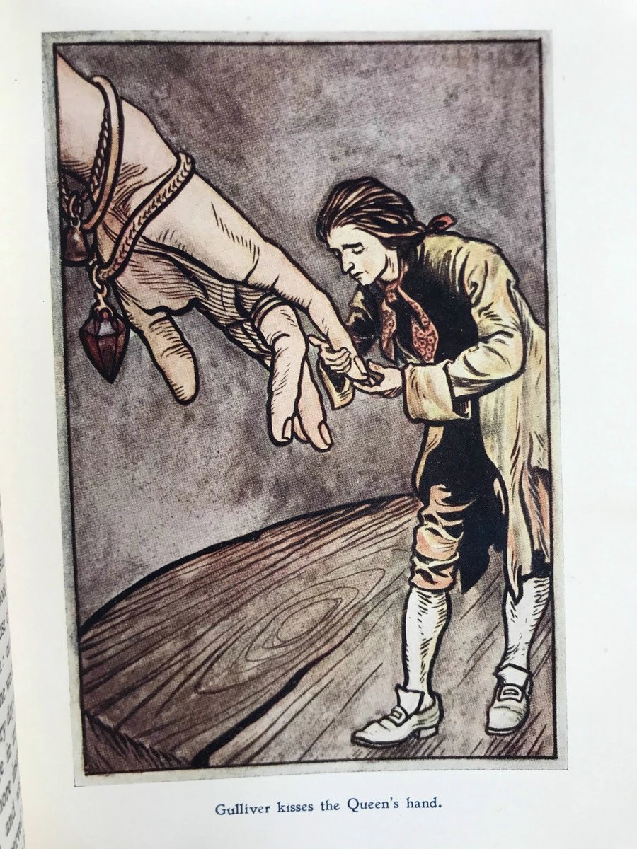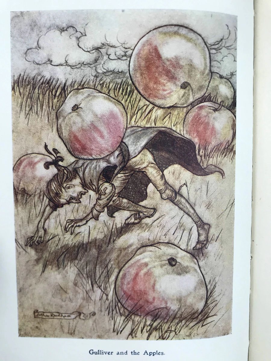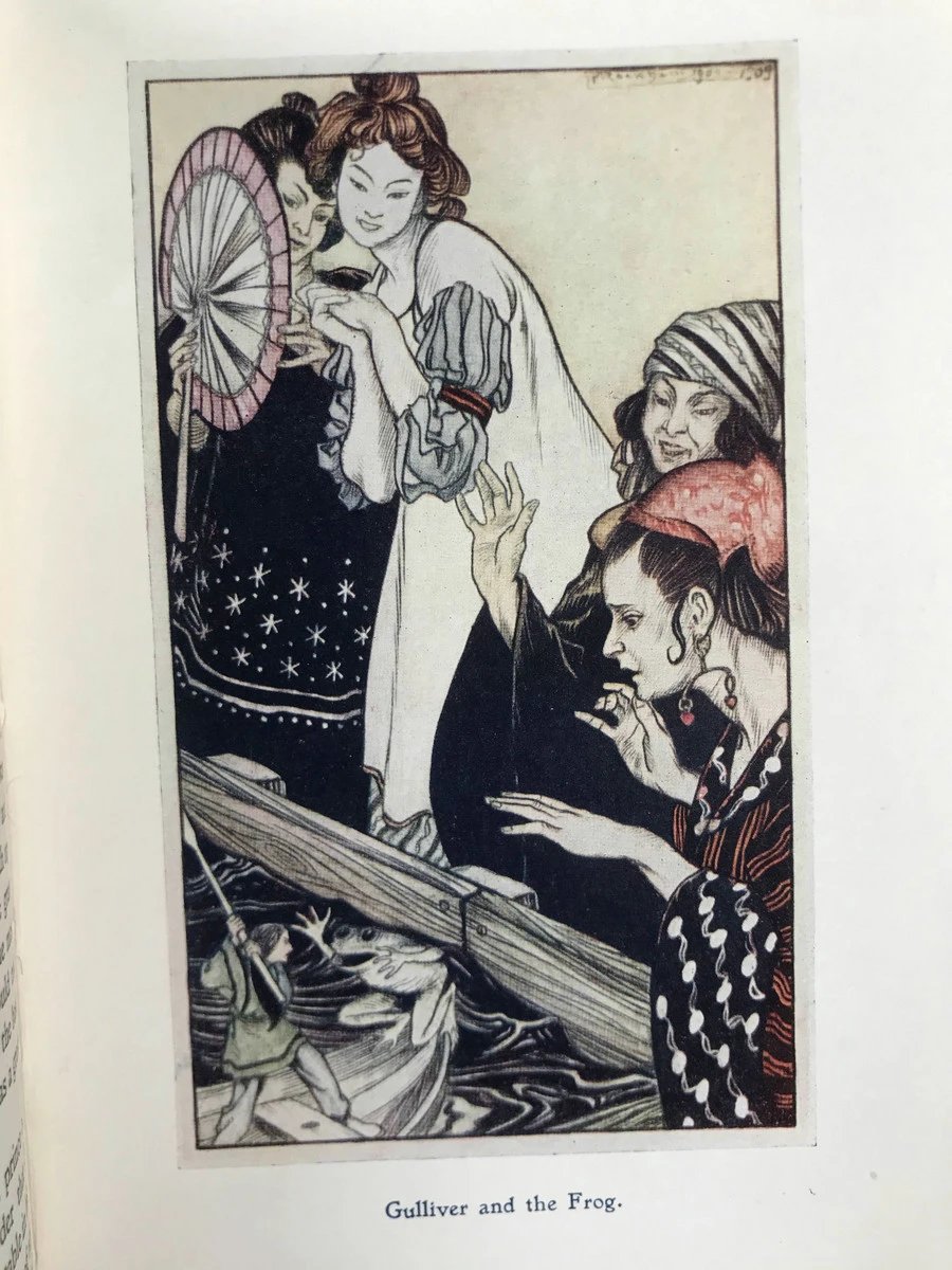 约20世纪早期 格列佛游记 鬼才拉克姆8幅彩色插图 漆布精装32开