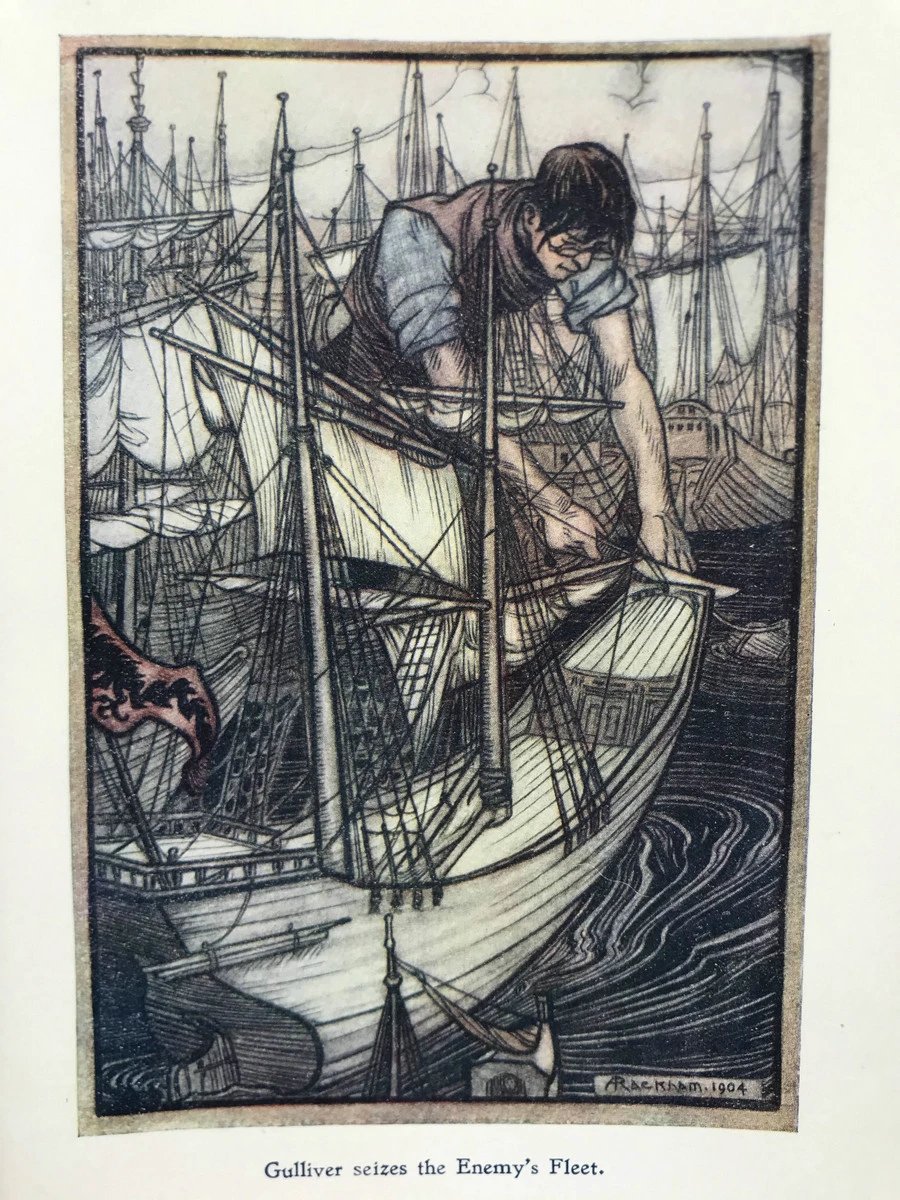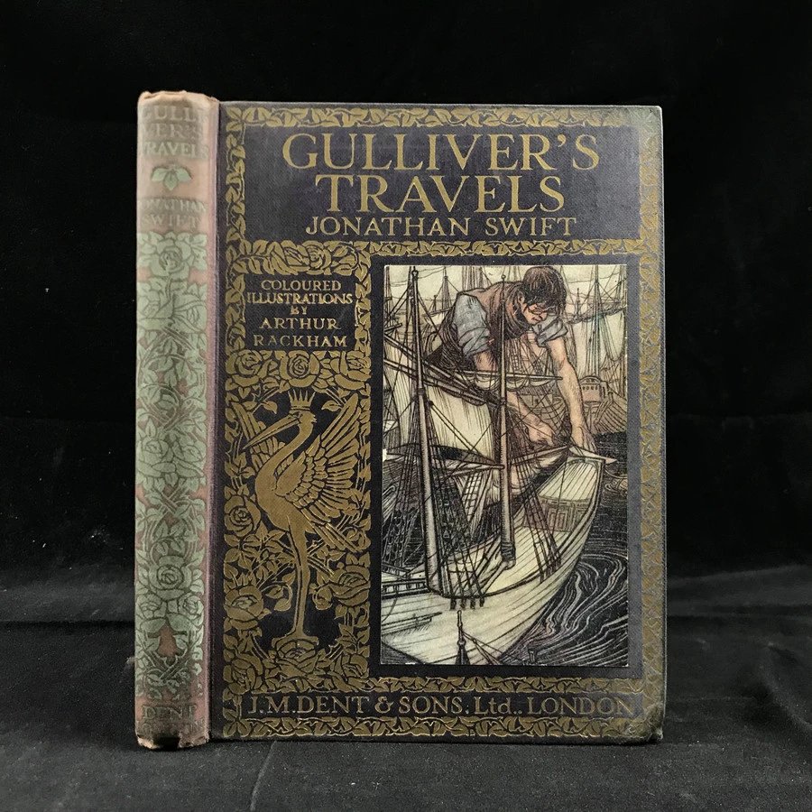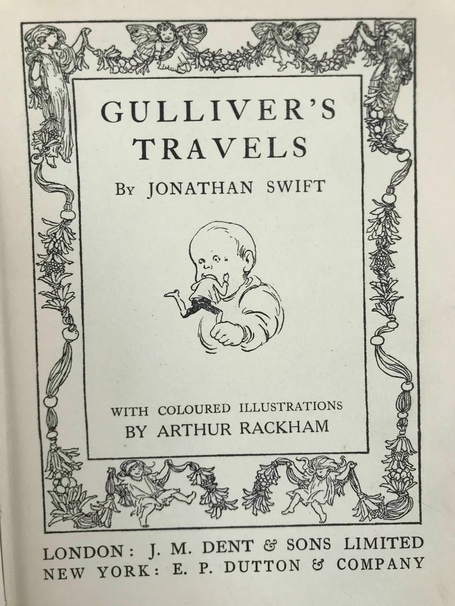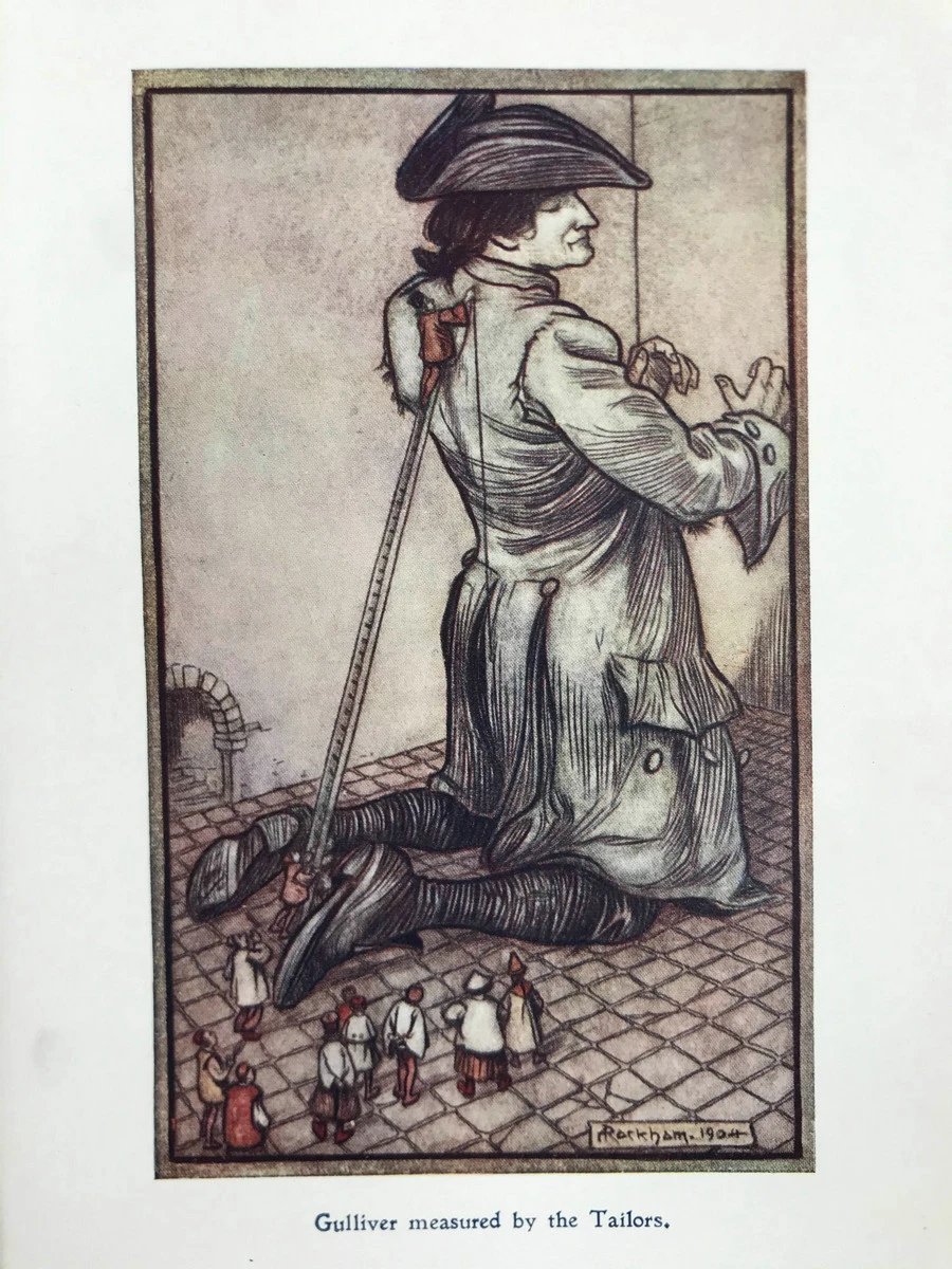约20世纪早期 格列佛游记 鬼才拉克姆8幅彩色插图 漆布精装32开