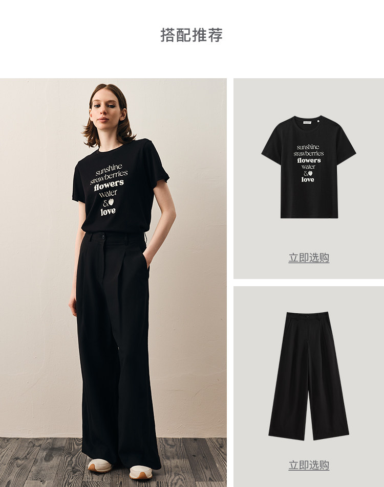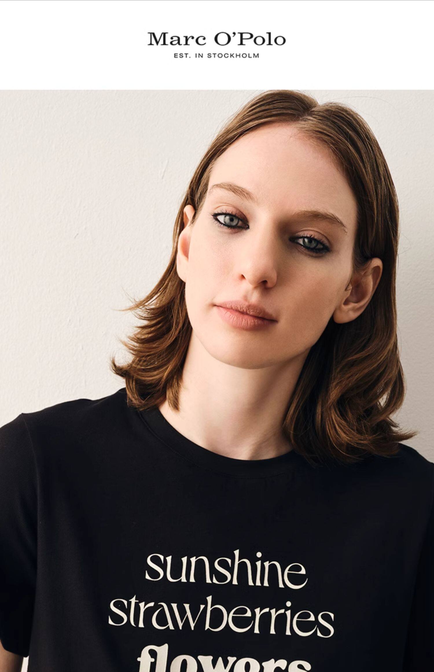 Marc O'Polo/MOP春季新款经典草莓系列纯棉简约圆领短袖T恤女上衣