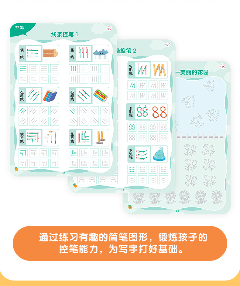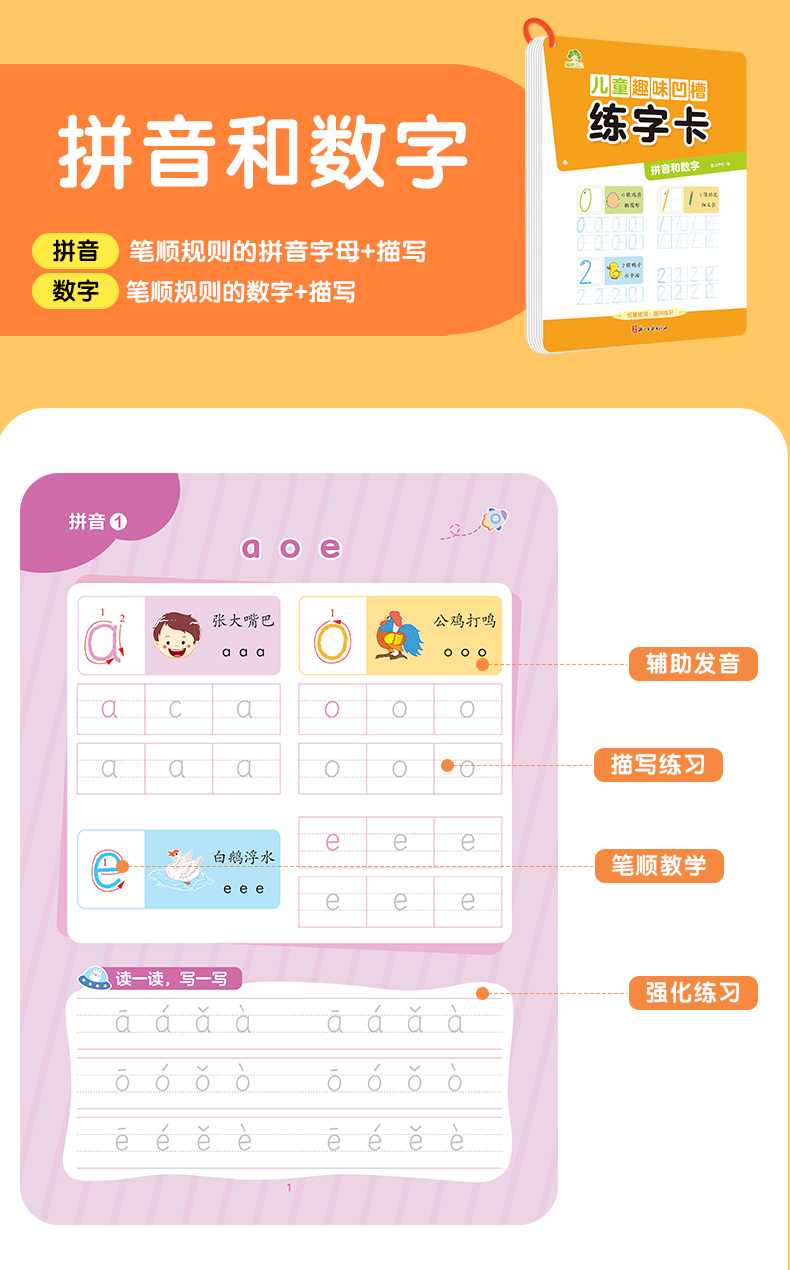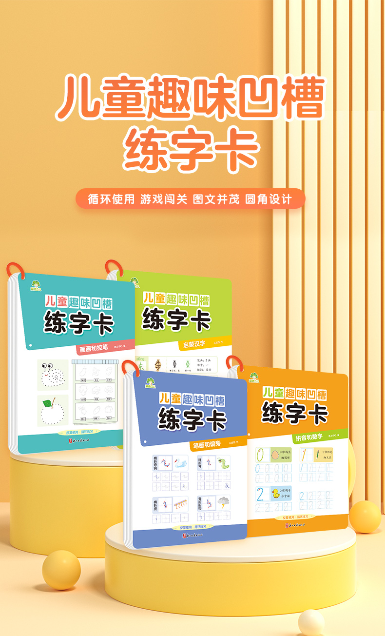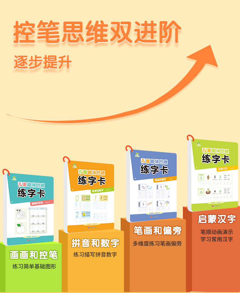 墨点:儿童趣味凹槽练字卡学前班控笔训练幼儿园启蒙学前3-4-5-6岁小学生练字帖拼音数字笔画描红本写字帖宝宝中班入门大小班练字本