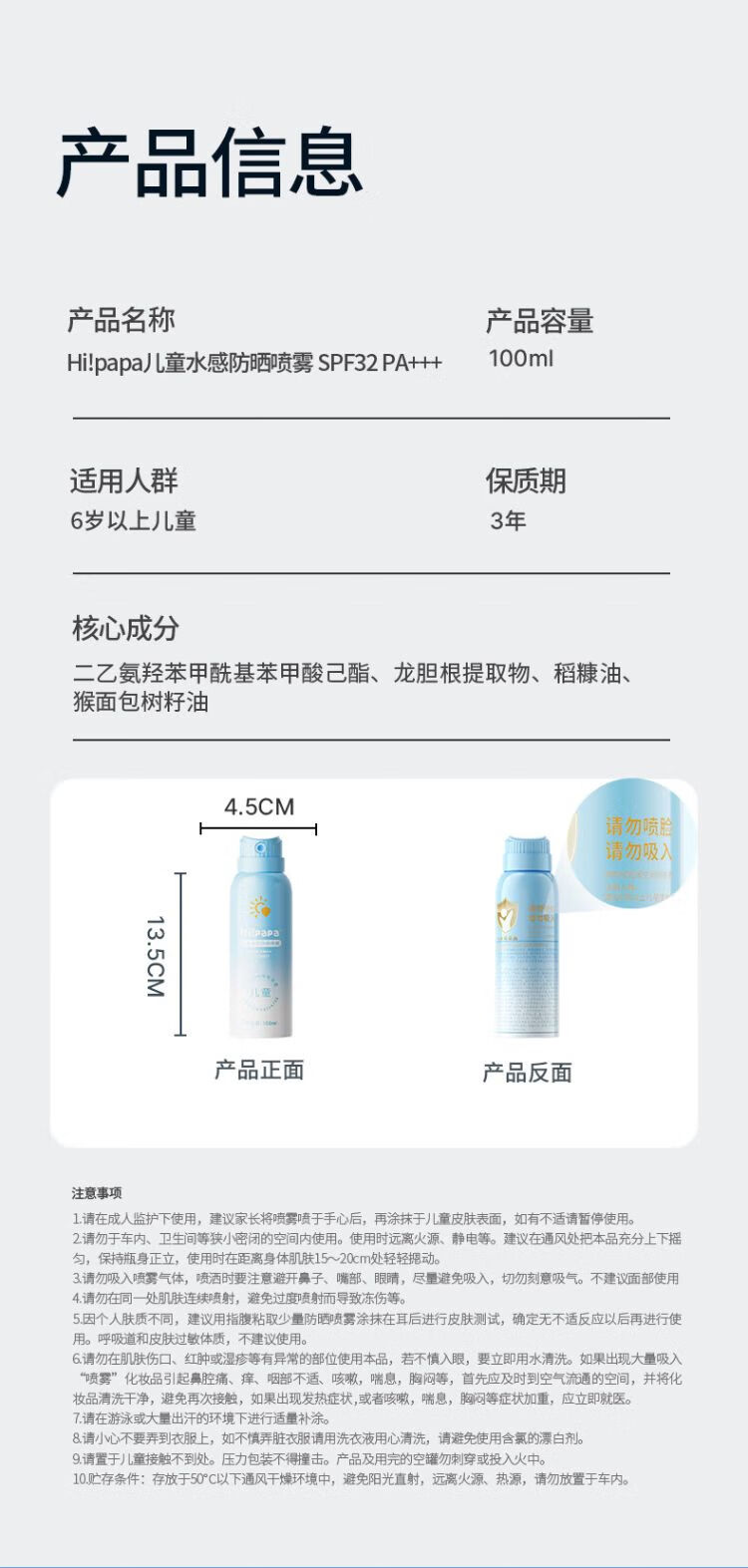 海龟爸爸 儿童水感防晒喷雾100ml SPF32 PA+++