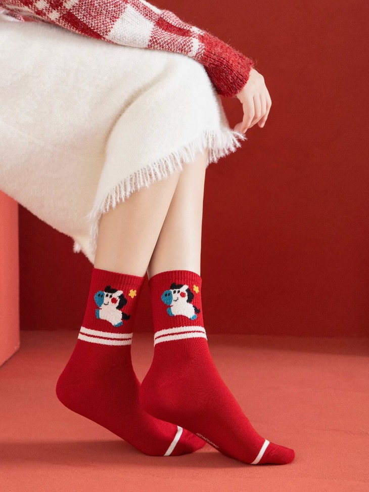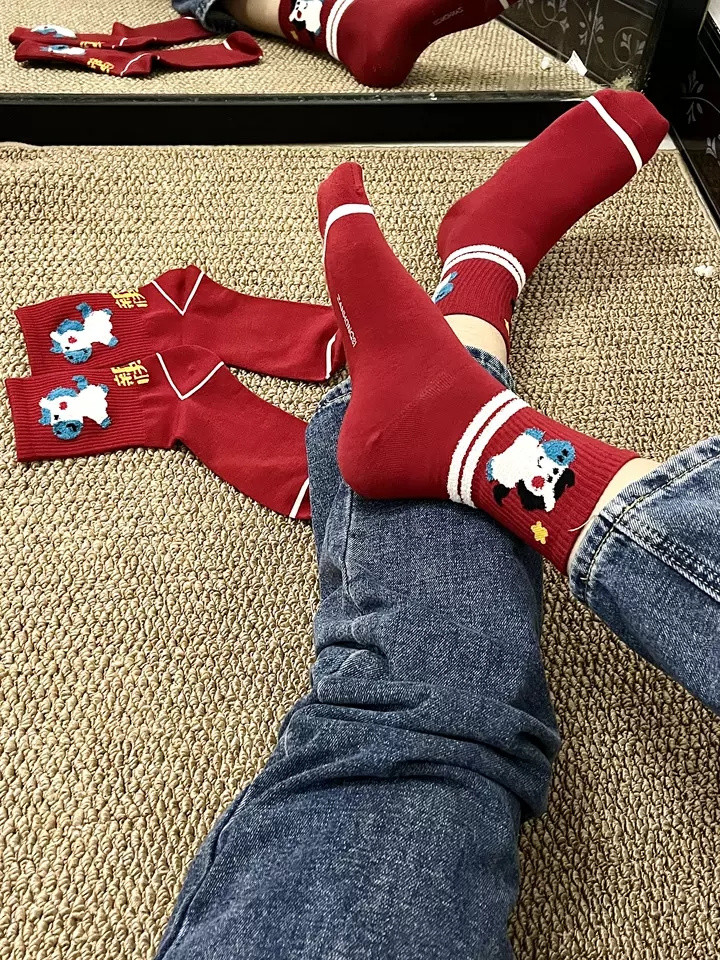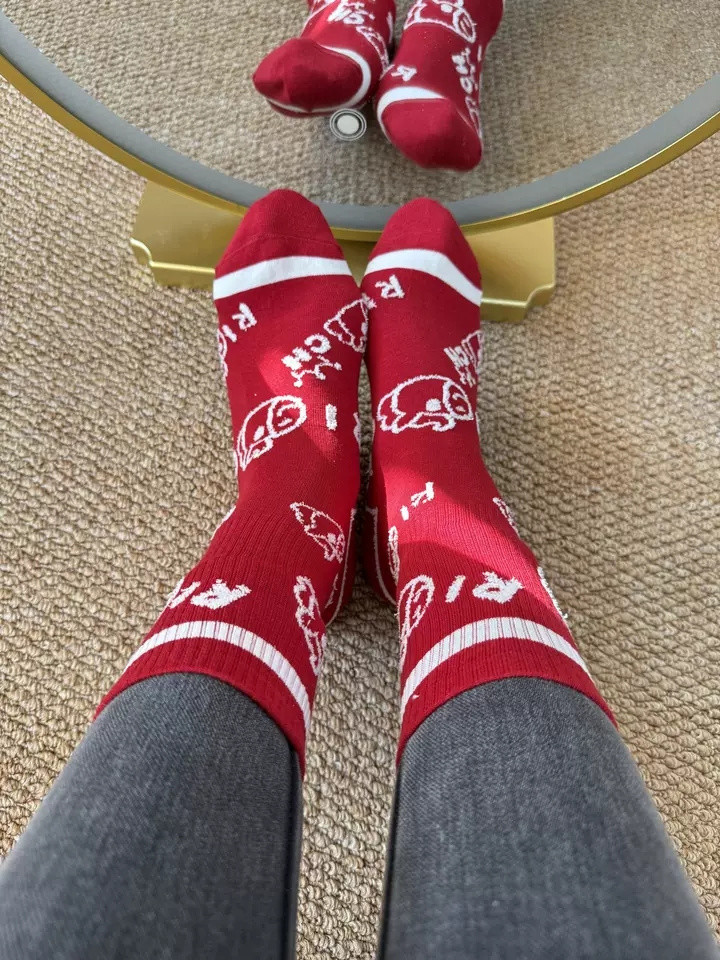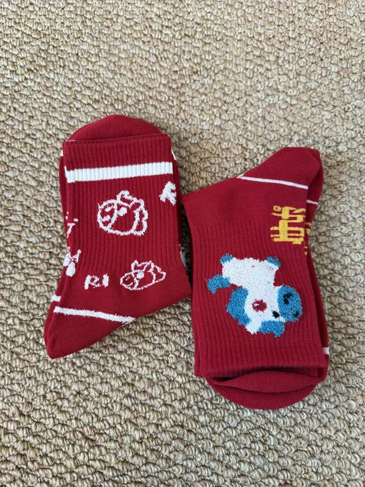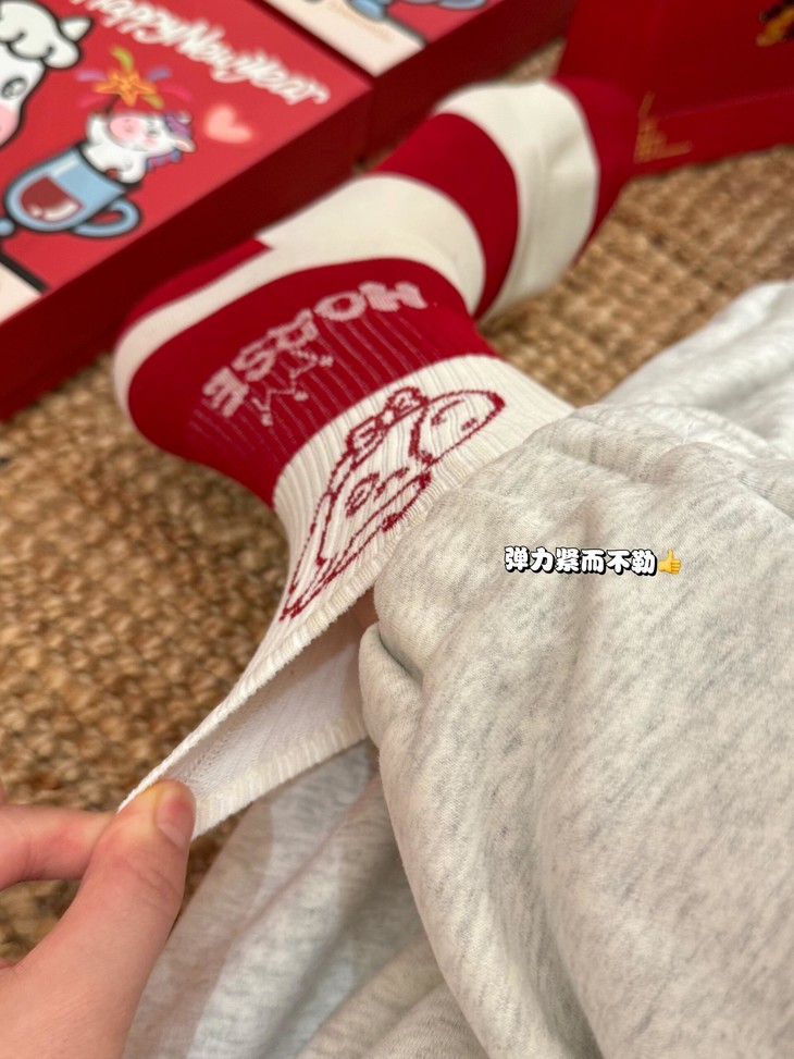 把新年好运藏在袜子里福气满满一整年 ✅颜色也是超正的大红色 不是那种俗气的红 而是很有质感的喜庆红 一看就有过年的氛围感~ 棉质面料巨舒服 穿上它,脚像踩在棉花上一样柔软舒适