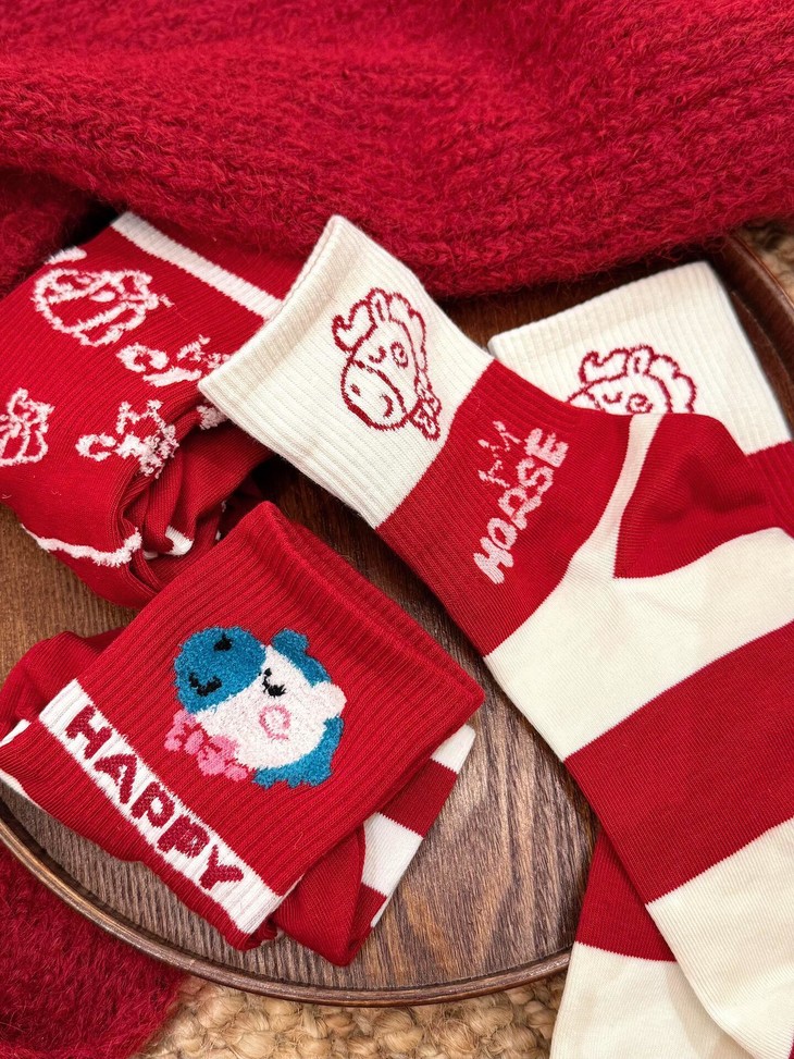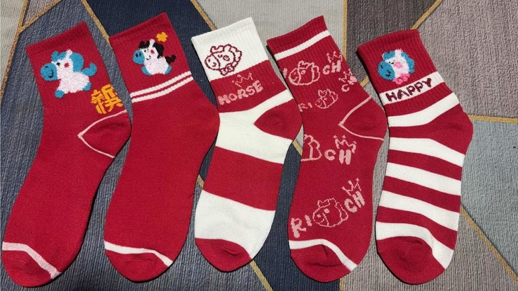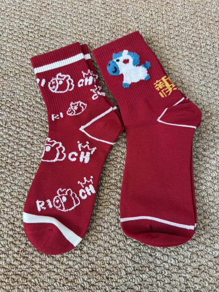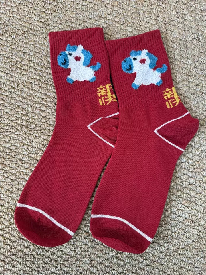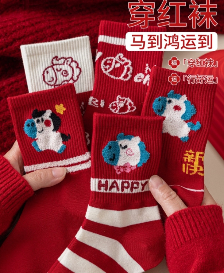 新年袜高端局🔥马年开运 穿出步步鸿运 【马年专属】新年就要“袜”中有福! 🐎 以马为灵感,开启新年开运仪式感 这次的新年袜不一样! 结合卡通造型与英文字母 更象征新的一年跃马扬鞭、一往无前 🧨 不只是袜子,更是可穿戴的祝福 从除夕穿到元宵,从本命年覆盖重要场合 结婚、考试、签约…脚踏祥瑞,底气十足! 植绒小马精细立体,久洗不褪色