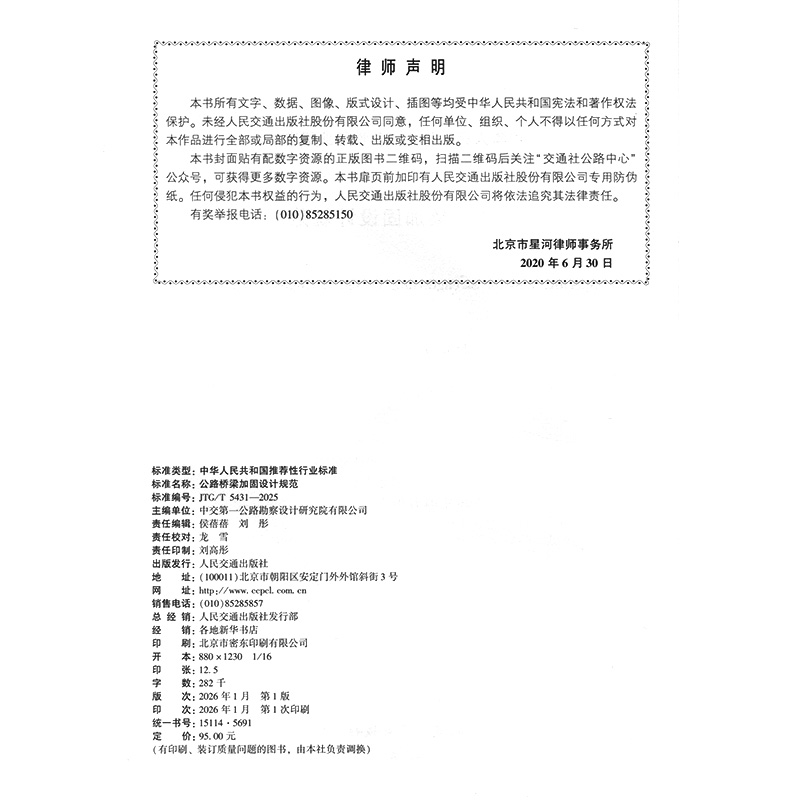 书名:公路桥梁加固设计规范(JTG/T 5431—2025 )