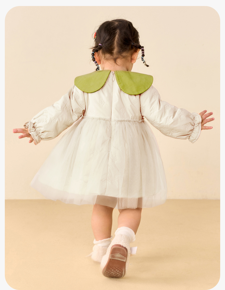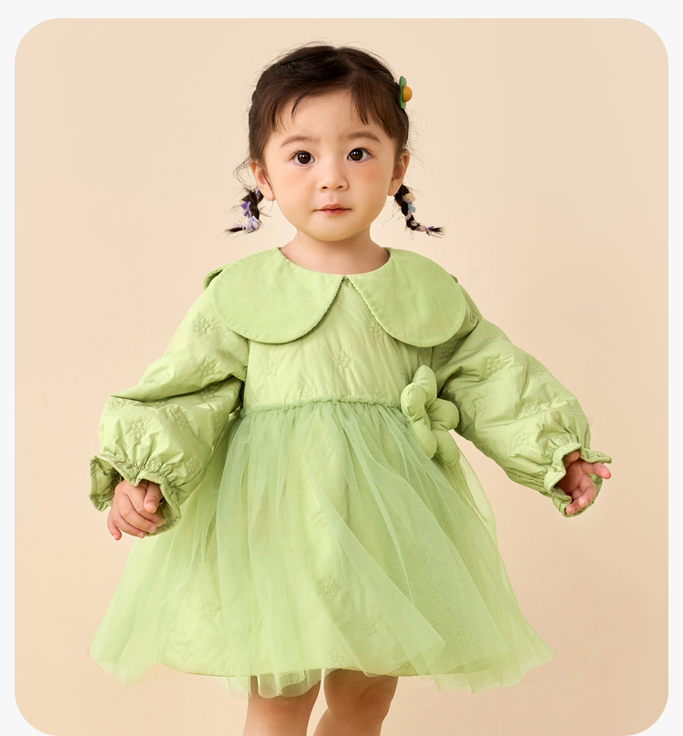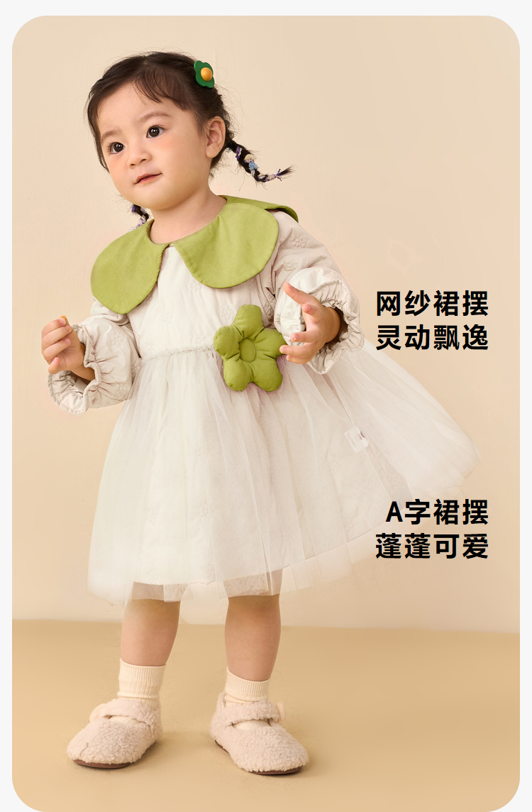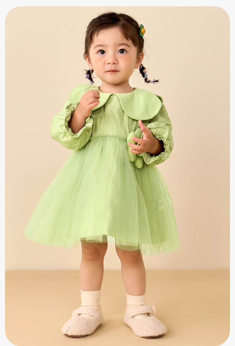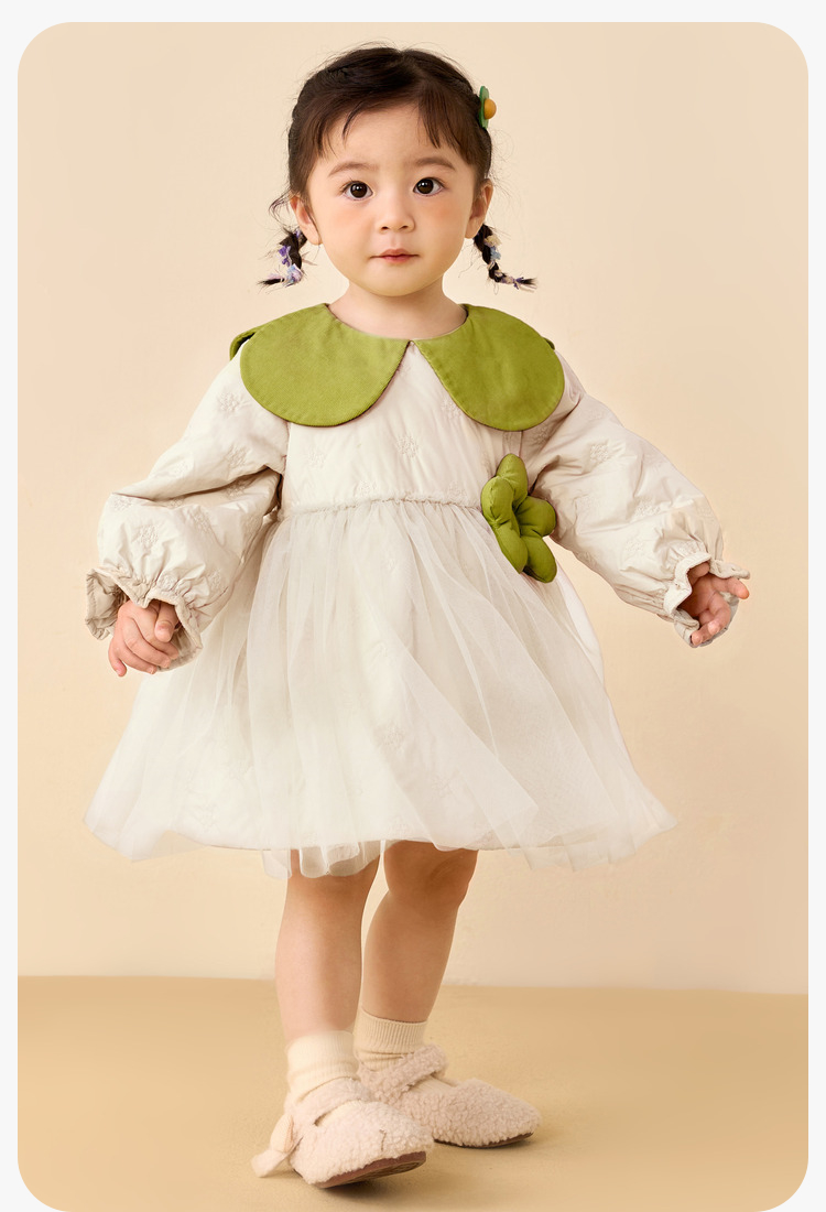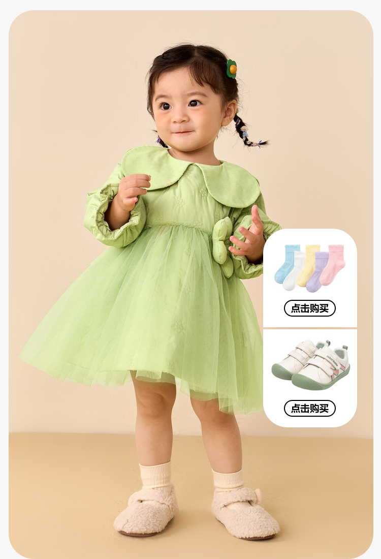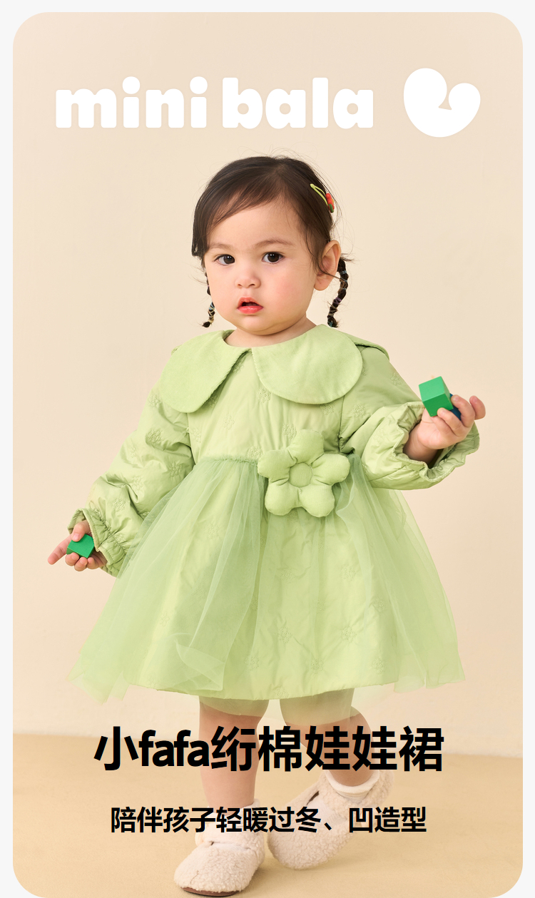 迷你巴拉女童连衣裙秋冬宝宝甜美A字花苞袖儿童洋气公主裙子
