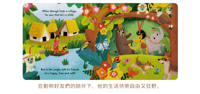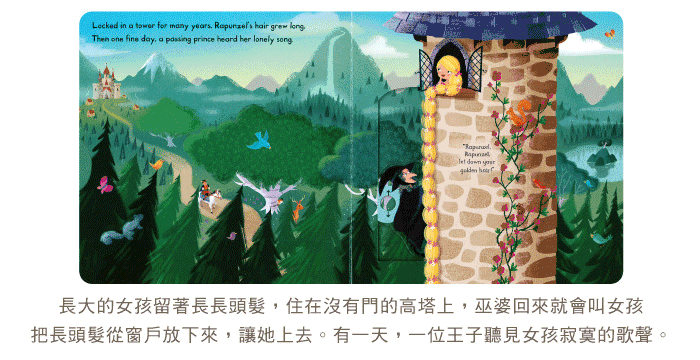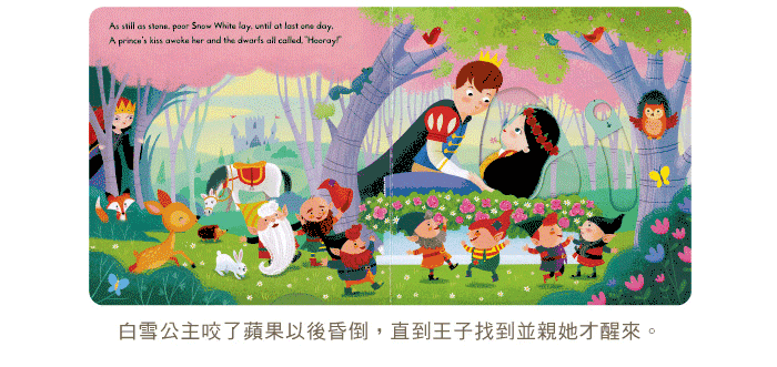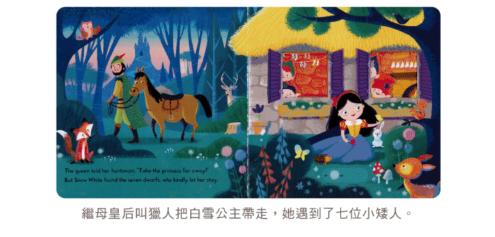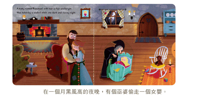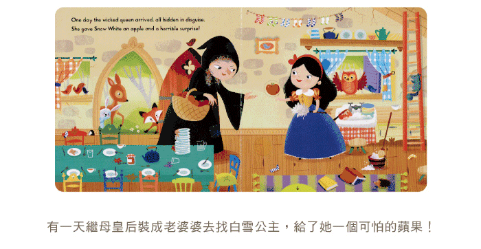 书中除了有拉拉转转的操作设计,让小朋友在阅读过程中锻炼小手肌肉发展,每页简单的问句和提示,也鼓励他们观察以及描述图画中的细节,还能增加亲子互动,对世界经典童话故事做启蒙阅读。