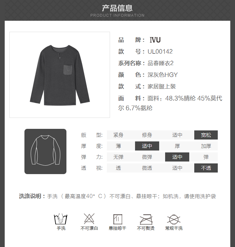 6FIVU男士莫代尔圆领长袖睡衣舒适可外穿家居上装UL00142(4.21)