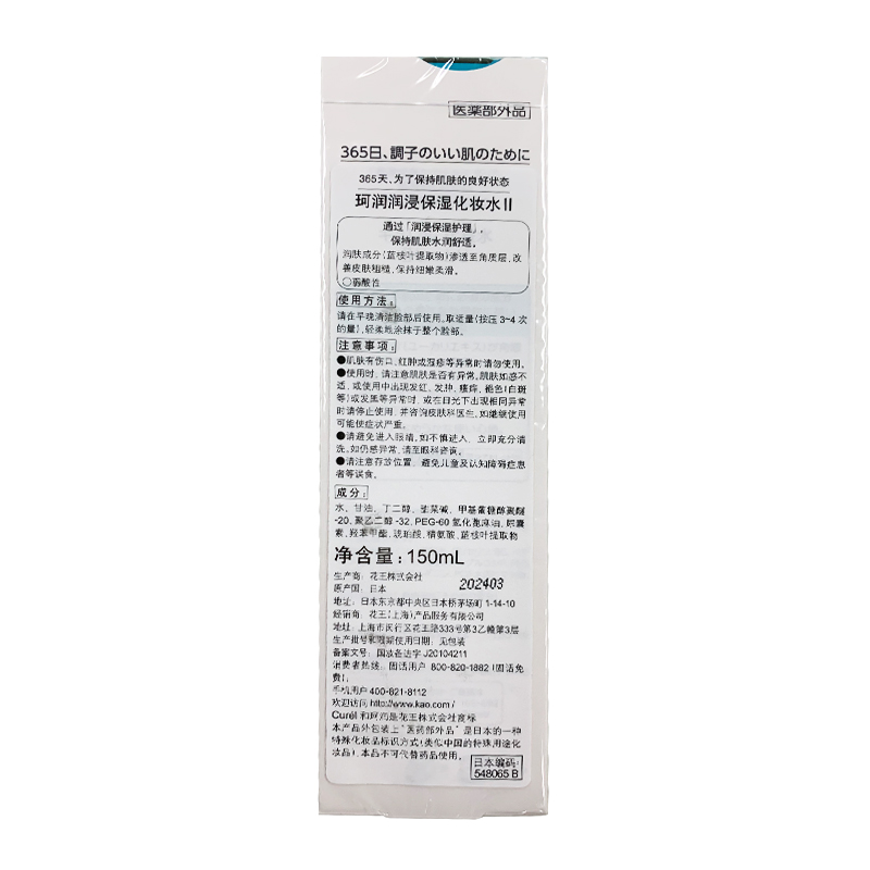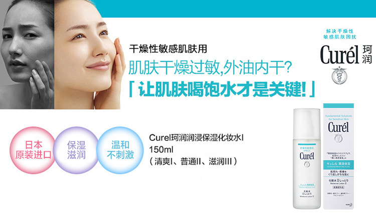 日本珂润(Curel)润浸保湿化妆水II 150ml温和滋润型(爽肤水保湿护肤女士补水敏感肌可用花王原装进口)