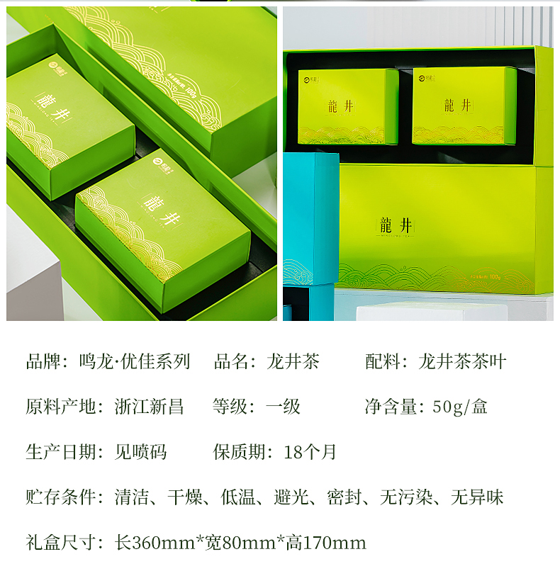 明前龙井 鸣龙优佳龙井一盒50g买两盒送礼盒