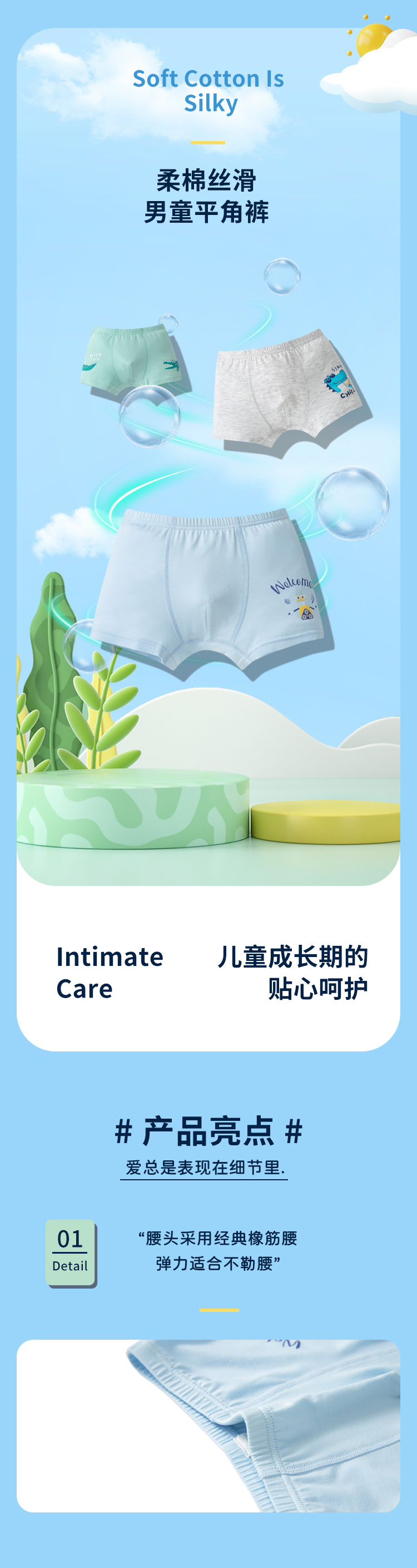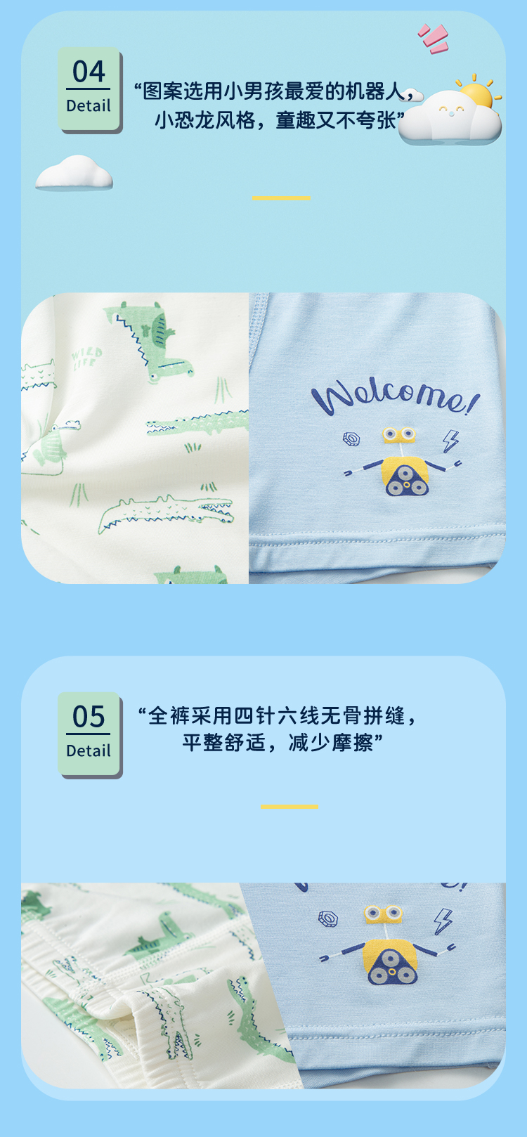 丽婴房魔棉材质男童三条装平角裤【LX8723400】