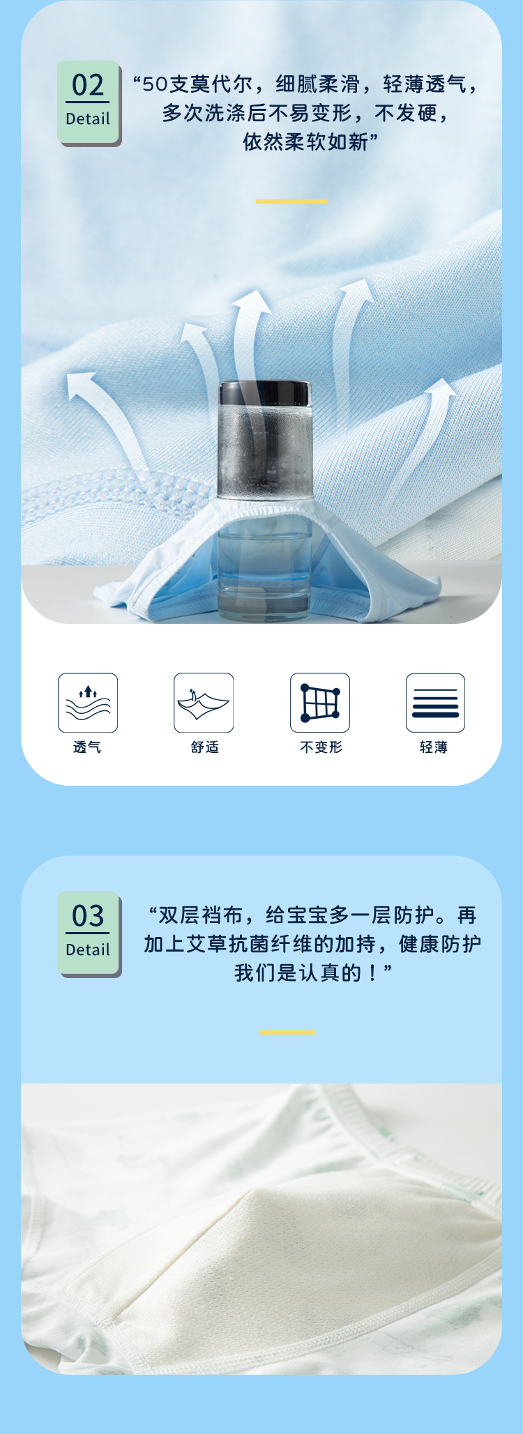 【点点】丽婴房男女童三条装内裤,腰头采用经典橡筋腰,弹力适合不勒腰,双层裆布,给宝宝多一层防护。再加上艾草抗*纤维的加持,健康防护我们是认真的!