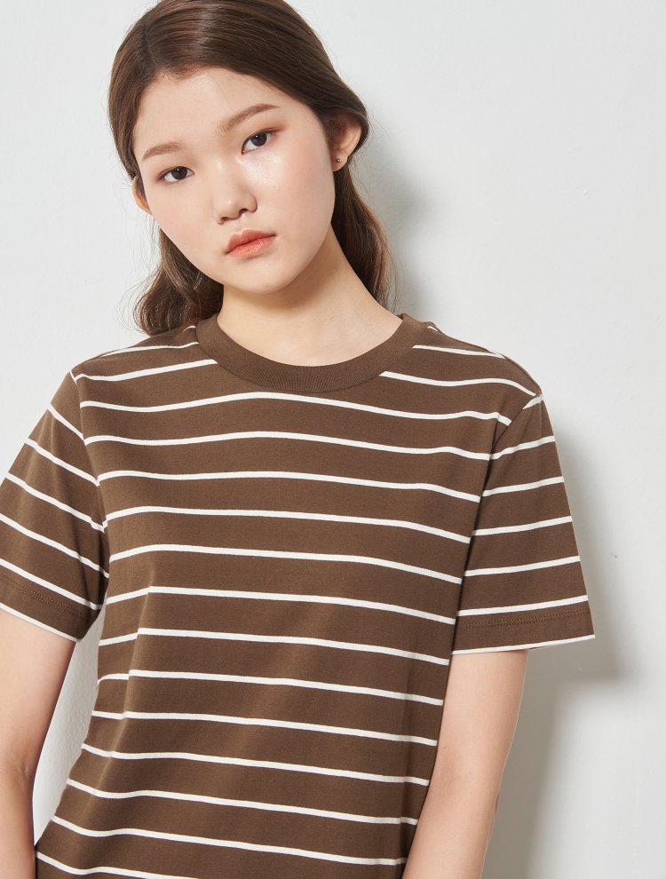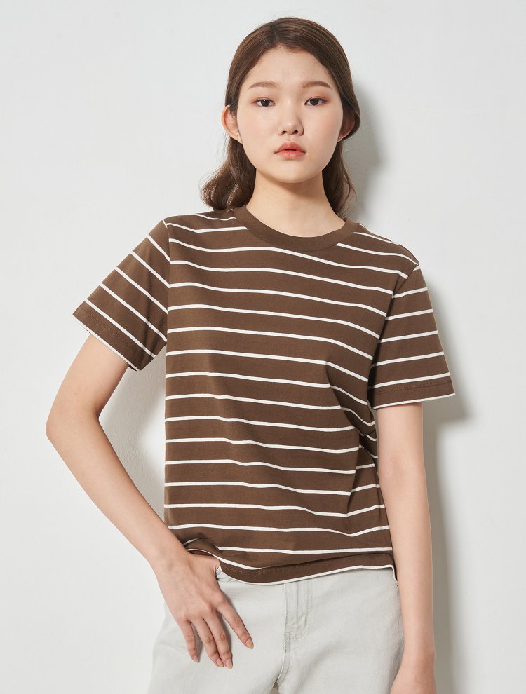 8seconds detail short sleeve T-shirt棕色Basic条纹短袖T恤女款JPY带授权招加盟代理