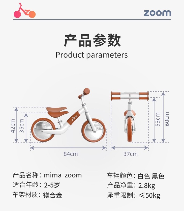mima zoom平衡车儿童滑行滑步车无脚踏2-5岁