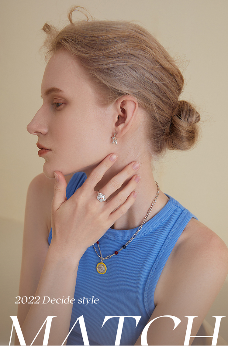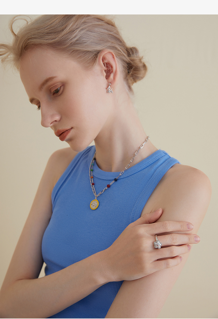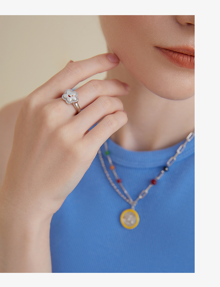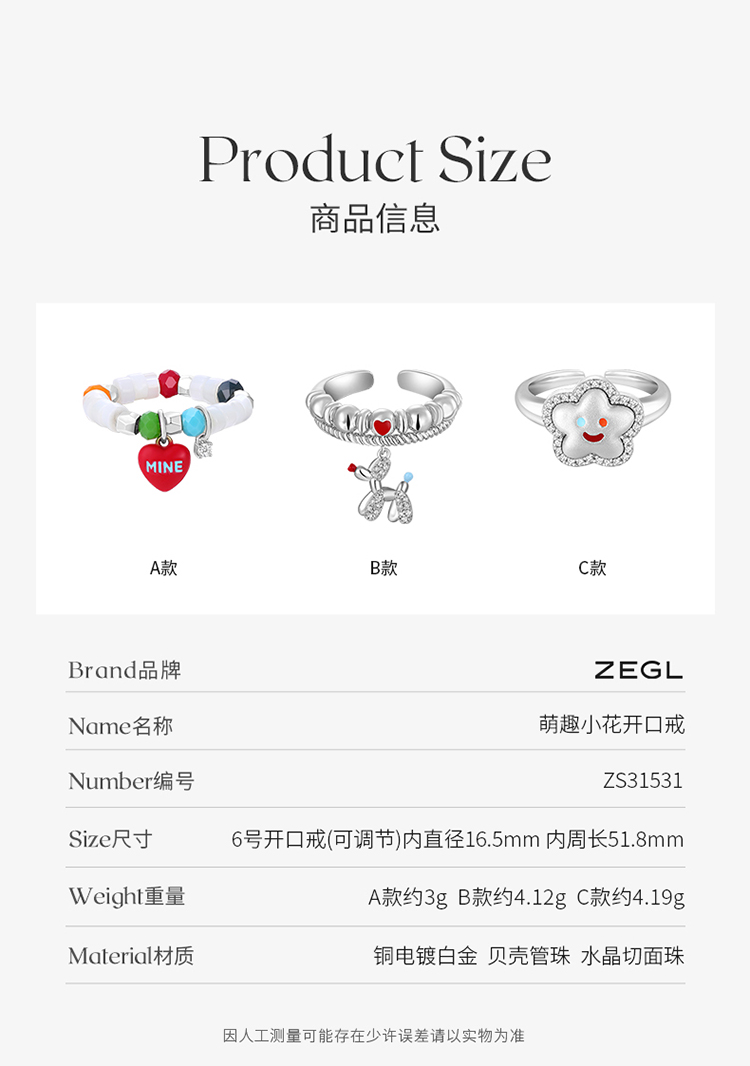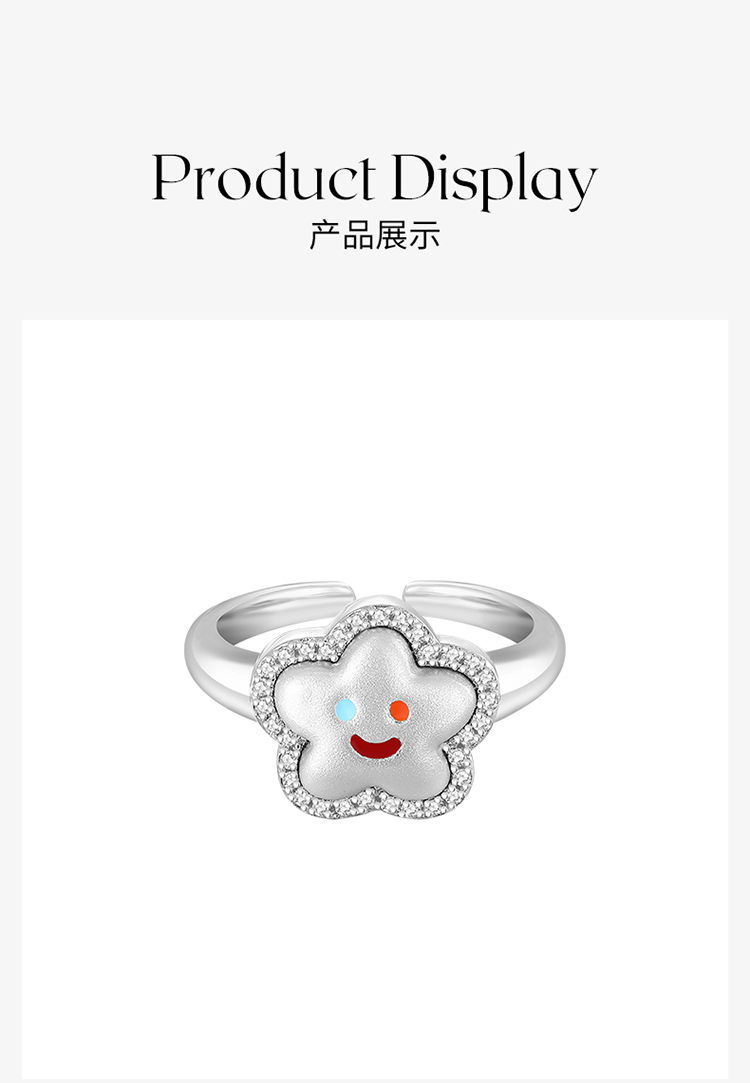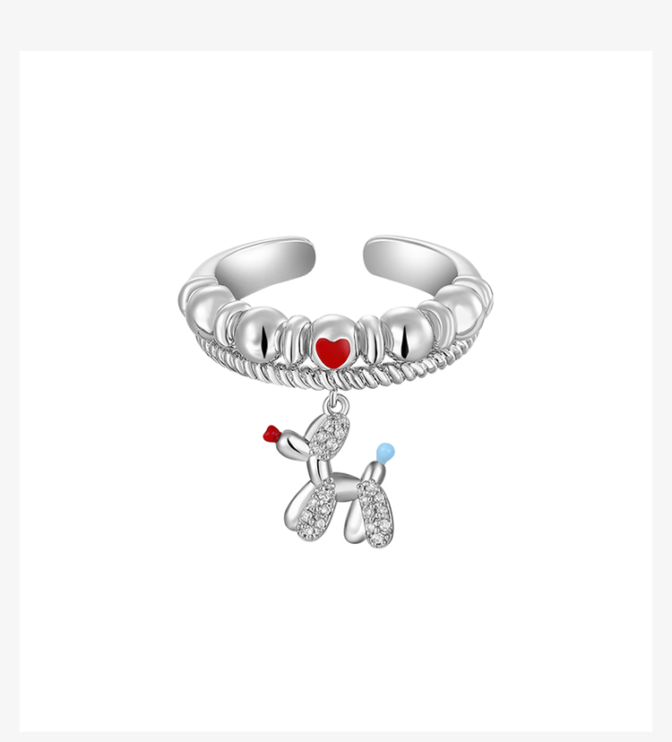 ZEGL设计师气球狗狗彩色戒指女小众设计多巴胺笑脸花朵彩虹食指开口戒子