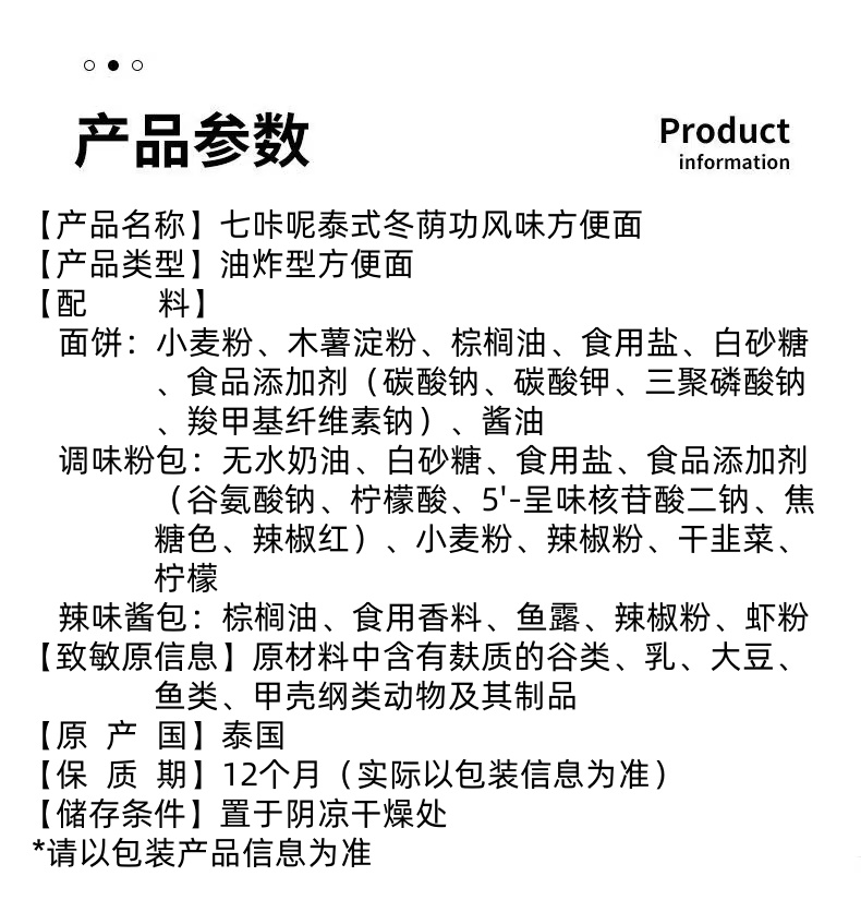 七咔呢泰式冬荫功风味方便面350g(泰国)