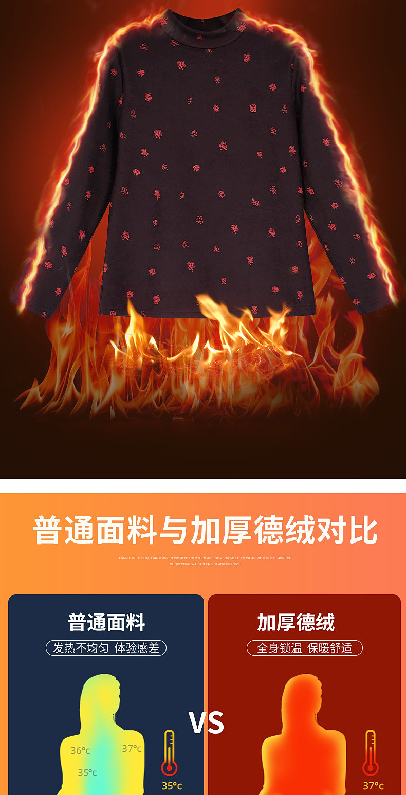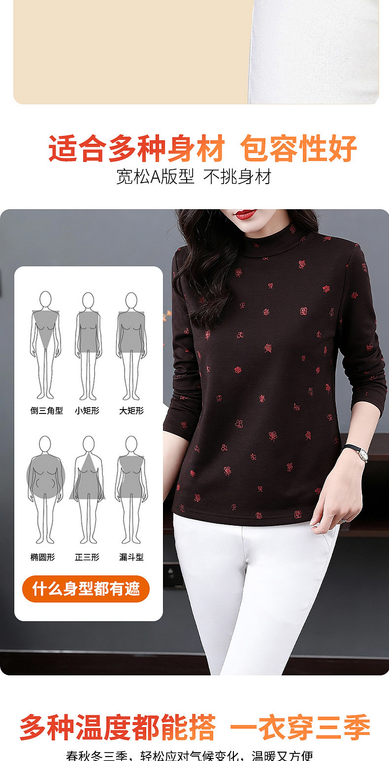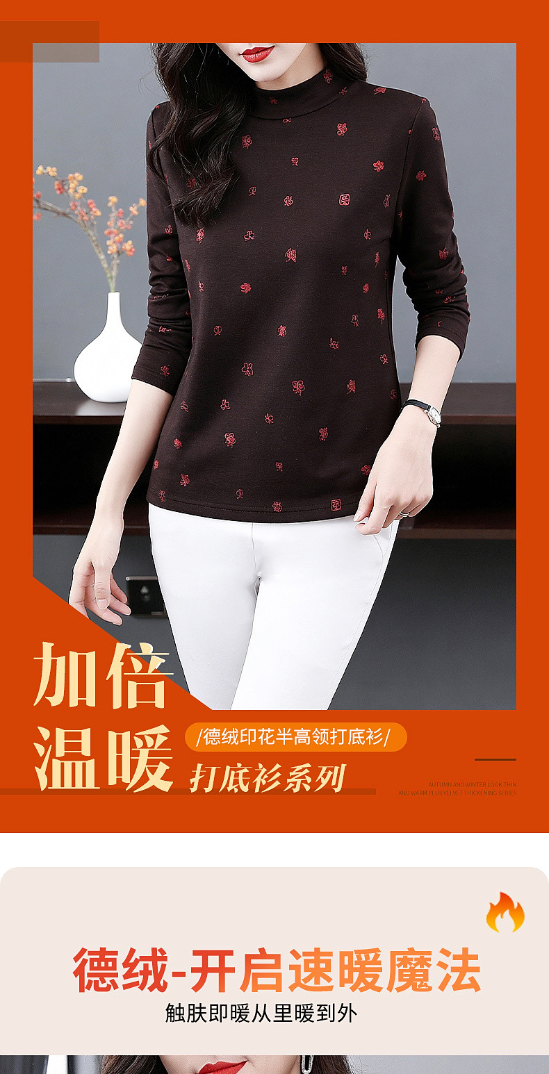 双面一体绒德绒打底衫女冬季新款半高领内搭上衣气质显瘦大码长袖