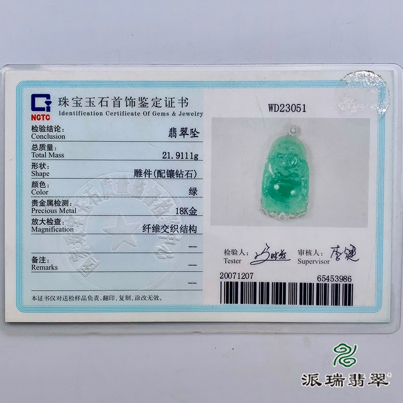 派瑞翡翠 18k金翡翠佛 冰糯种 绿色