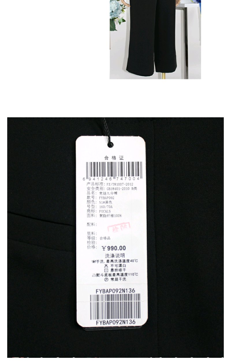 FOCALS福柯斯春秋新款百搭纯色休闲宽松直筒裤九分女裤FYBAP092N1