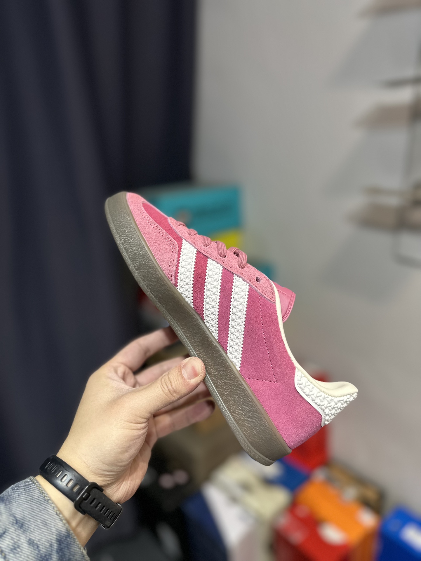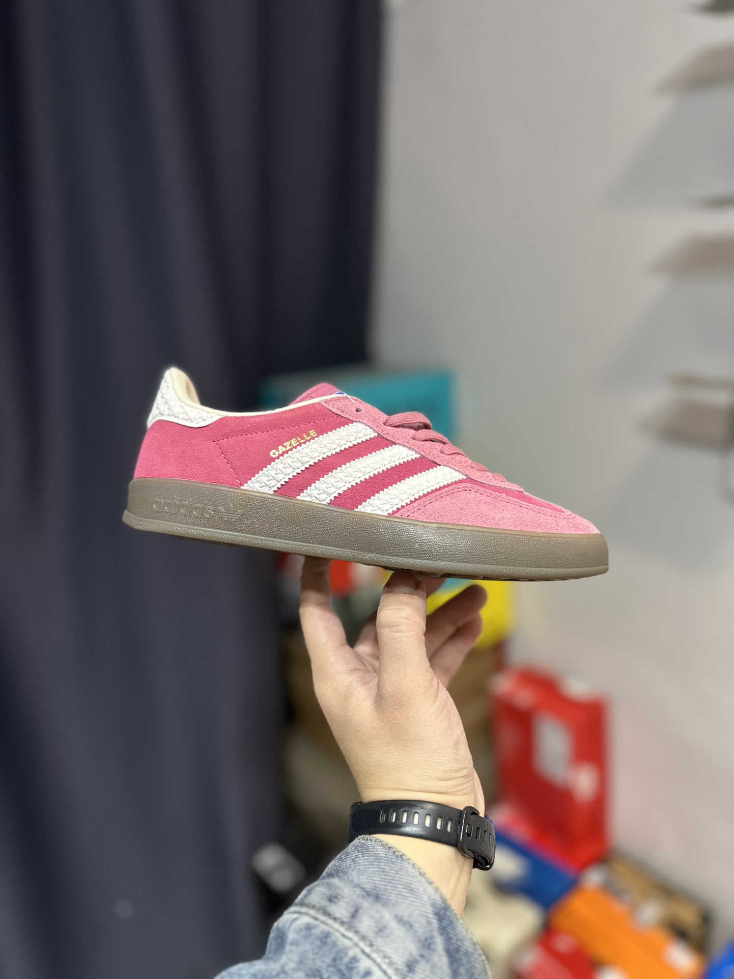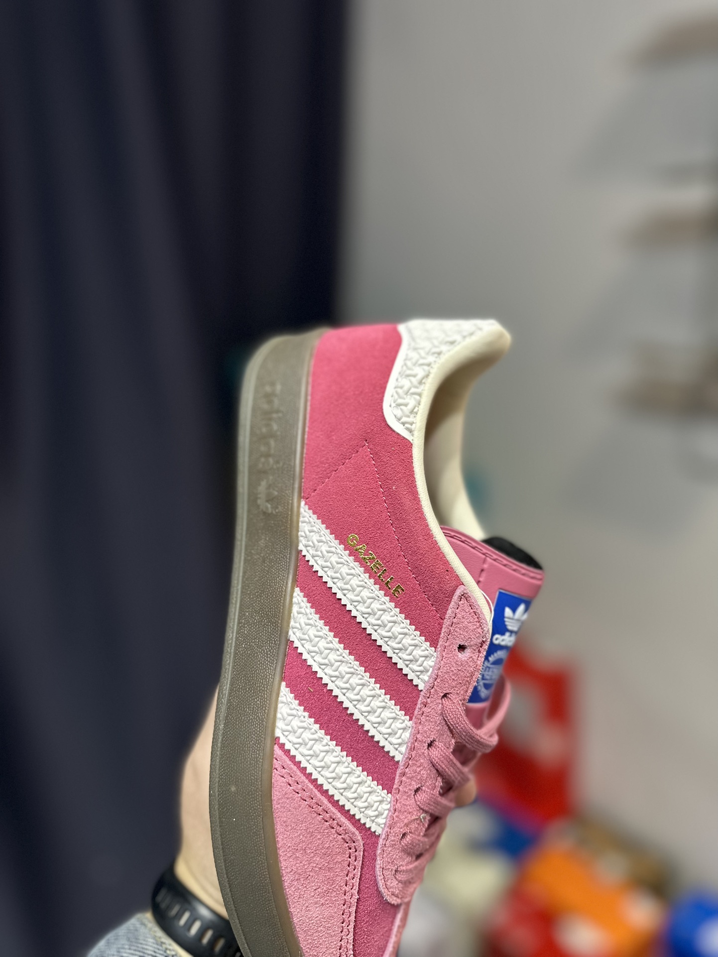 将复古进行到底!Adidas Gazelle Indoor Trainers 羚羊内训系列低帮复古德训板鞋“翻毛树莓粉白焦糖底”谁能拒绝这么可爱的草莓熊配色呢 脚感轻便舒适 巨巨巨巨显腿细~