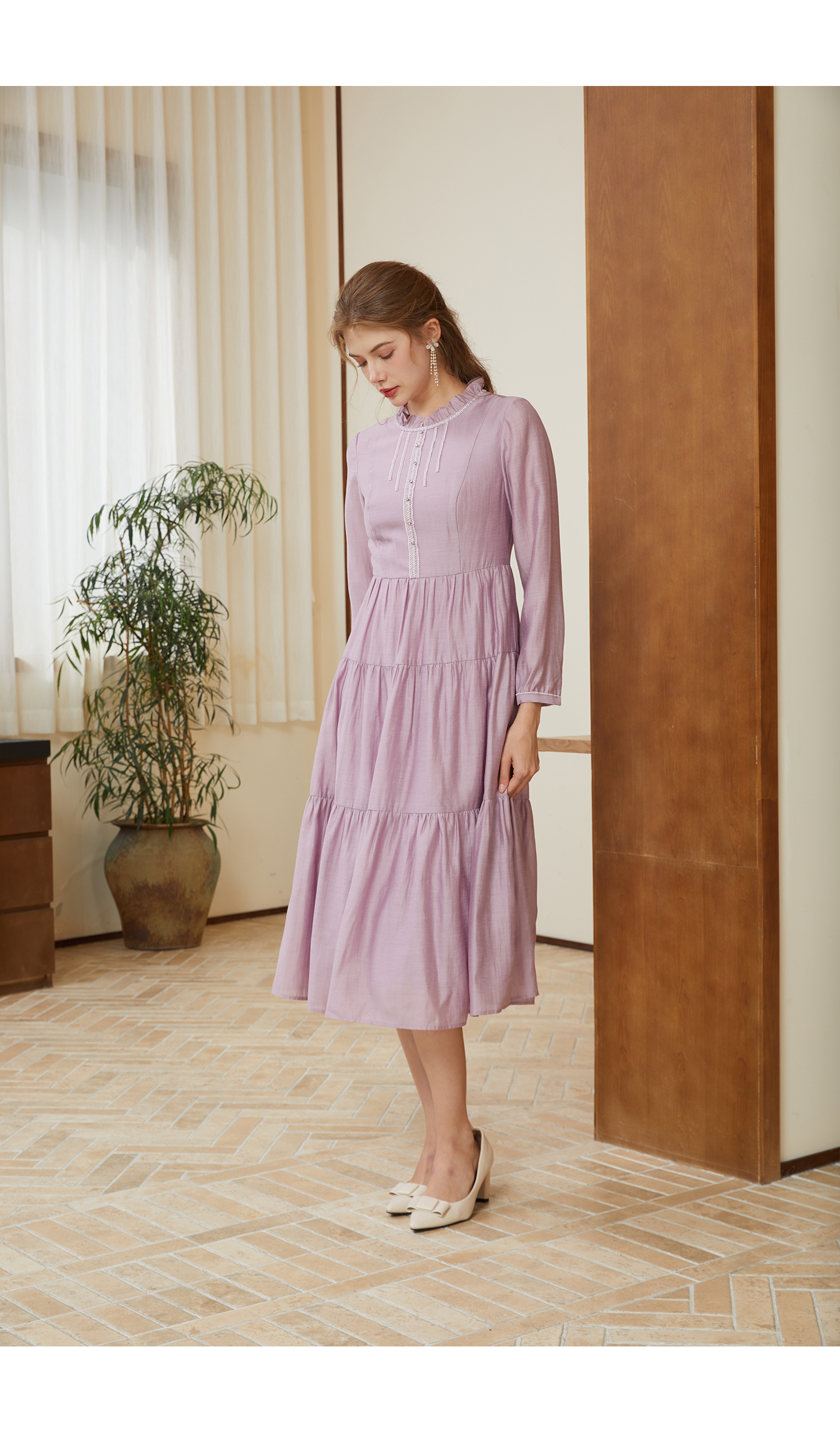 司歌长袖圆领冬连衣裙弹力收腰百搭净色气质A881025
