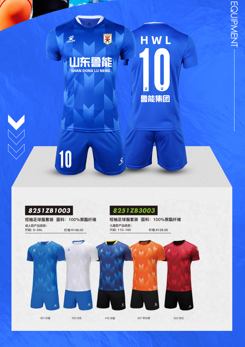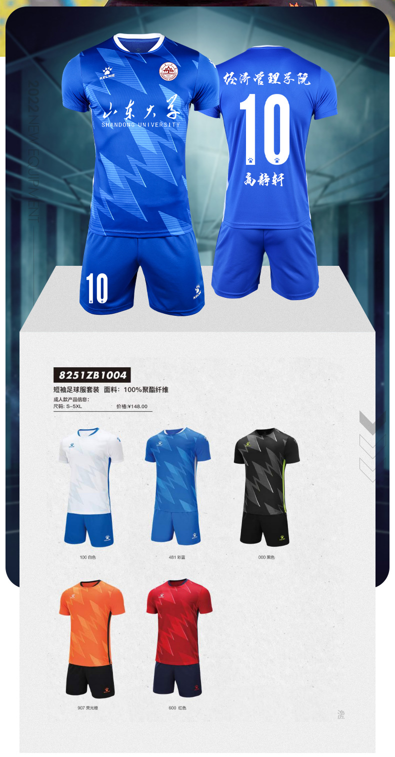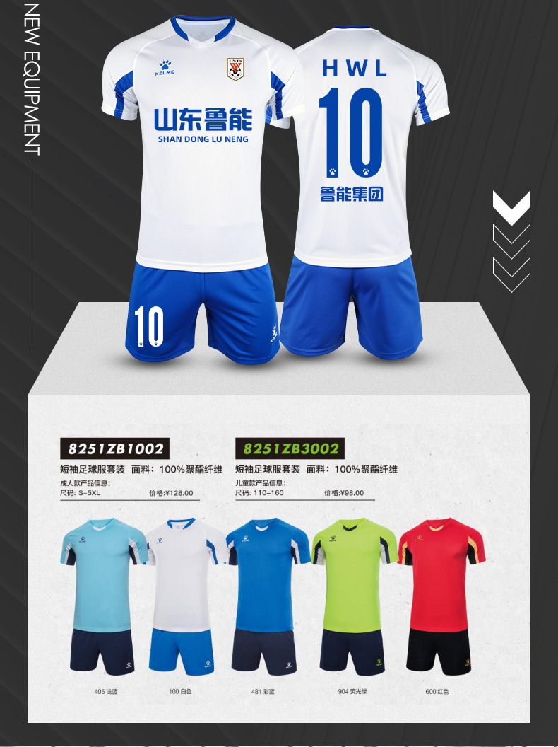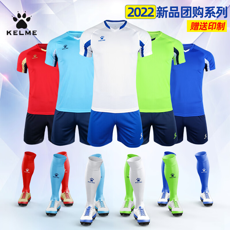 KELME卡尔美足球服套装男儿童球服组队服定制印字球衣比赛训练服 8251ZB1002足球服套装(白色)