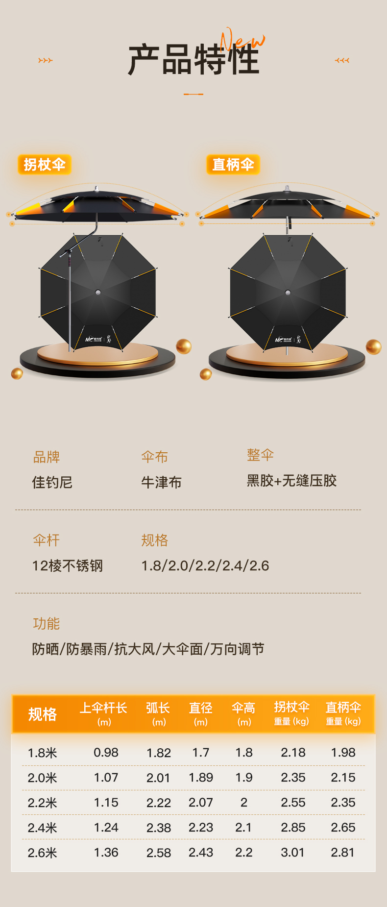 佳钓尼伏魔扣花钓鱼伞超轻拐杖伞遮阳伞防晒抗风