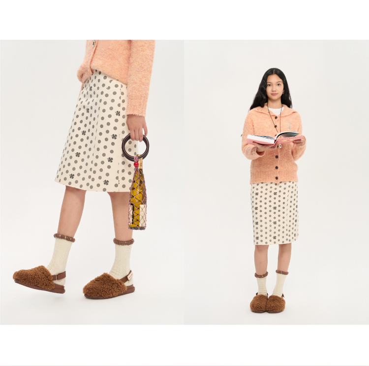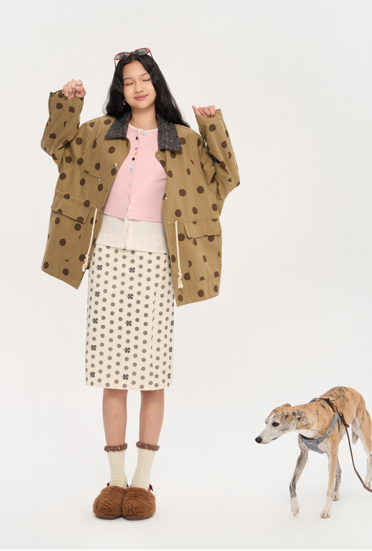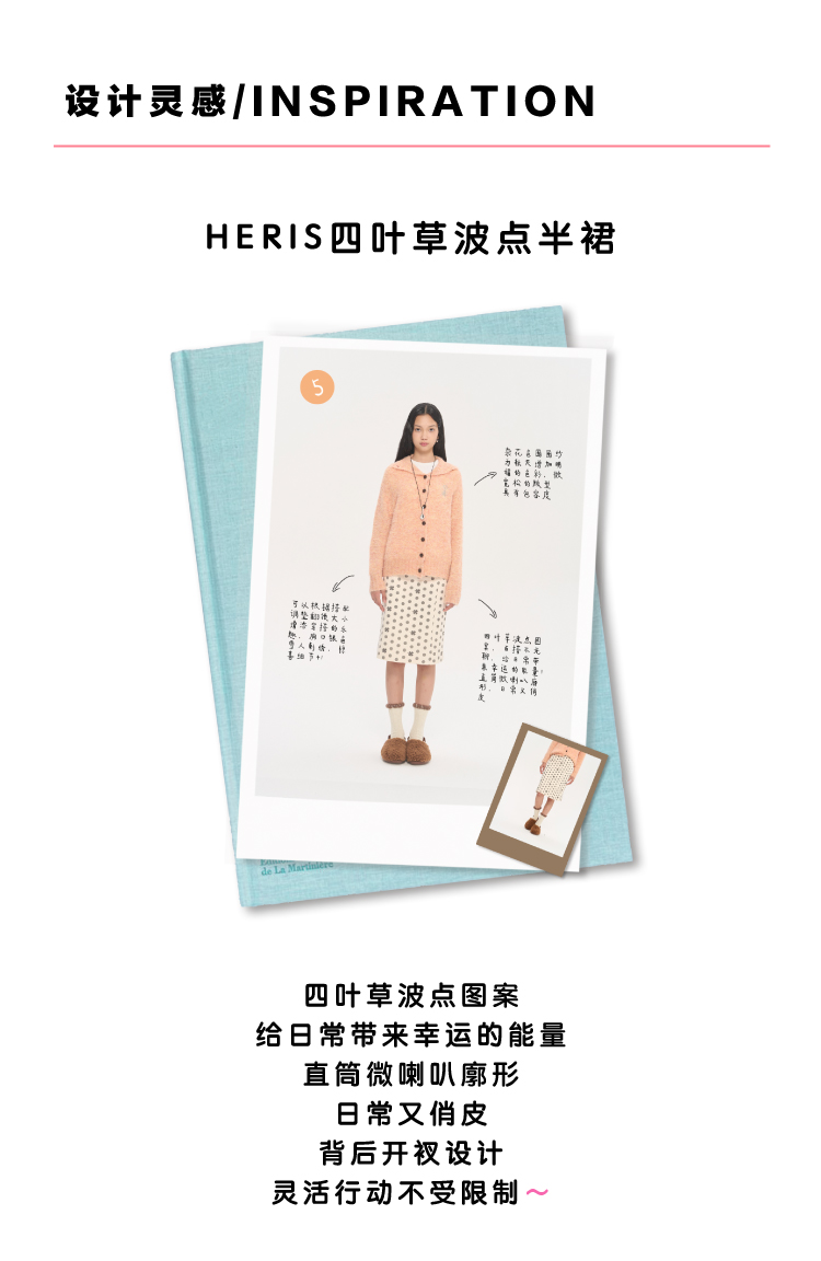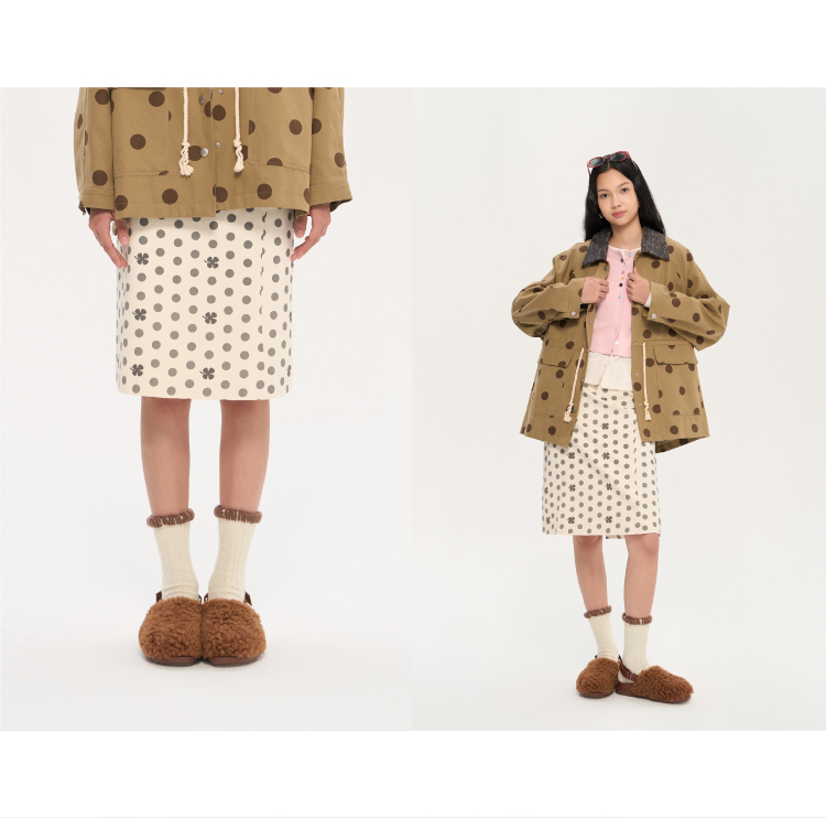heris/H53130/四叶草波点 立裁分割微喇 直筒显瘦百搭半裙