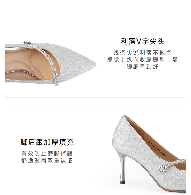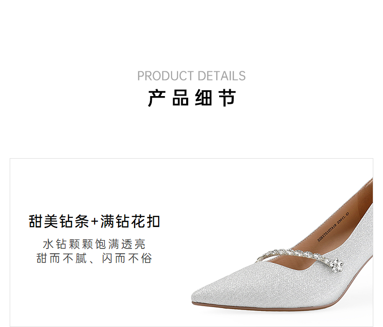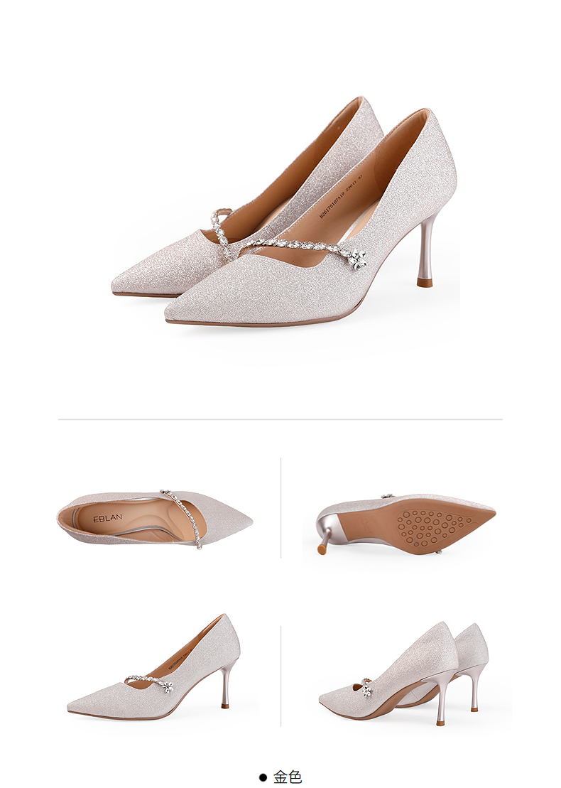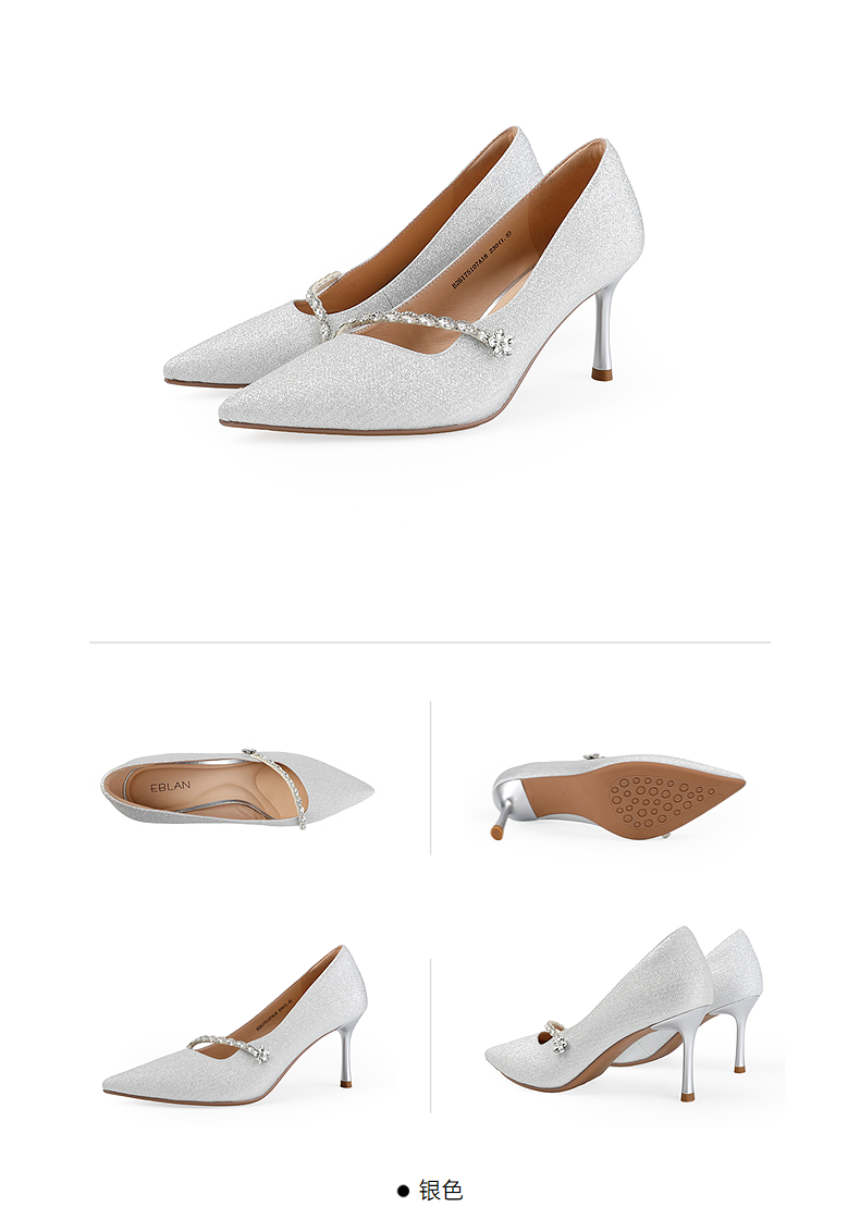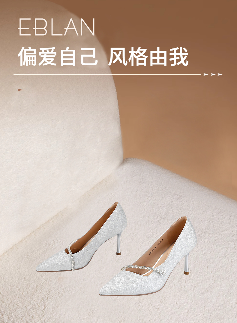 【上新】伊伴2026春季甜美闪钻饰扣尖头气场高跟鞋B26175107