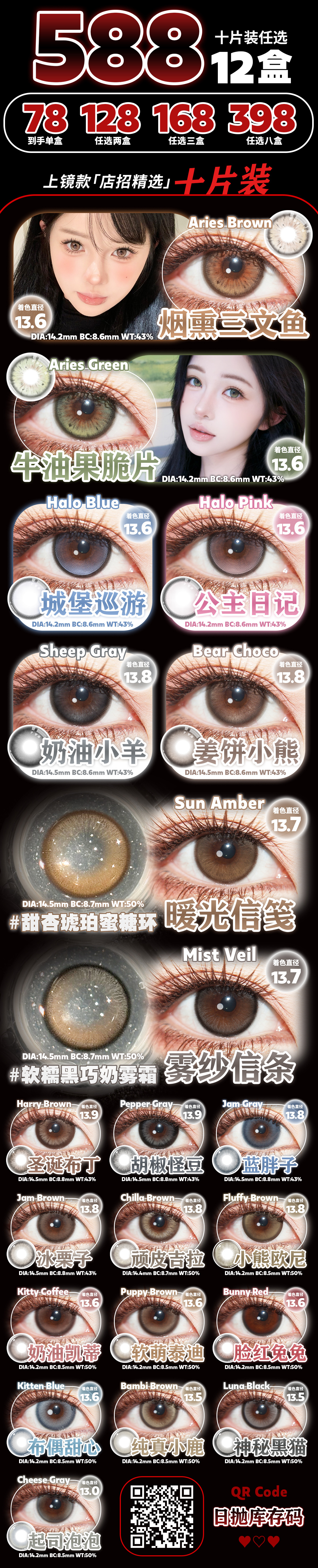 ②:布偶甜心-2盒100,神秘黑猫-1盒150,送取戴器+湿纸巾+滴眼液+收纳筒