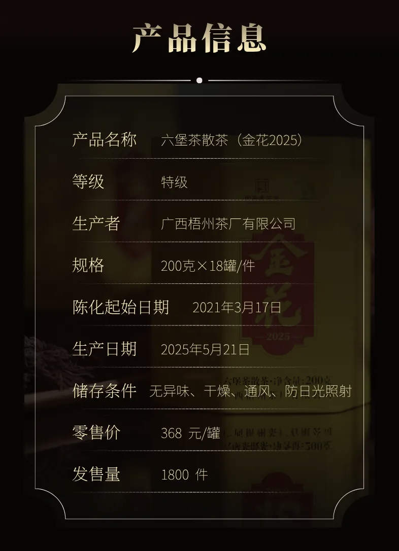 三鹤六堡茶散茶(金花2025)特级高山黑茶广西梧州茶厂菌花香200g
