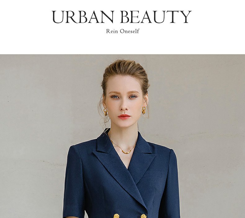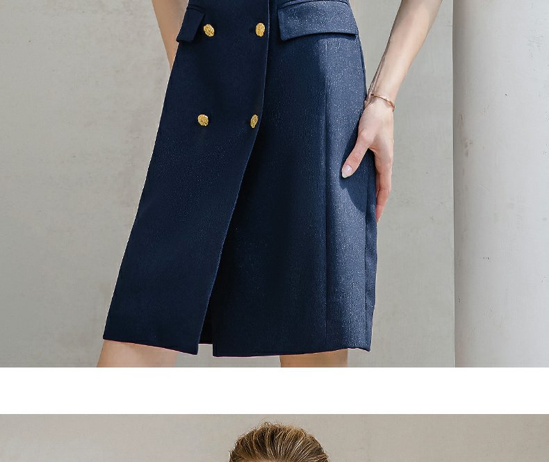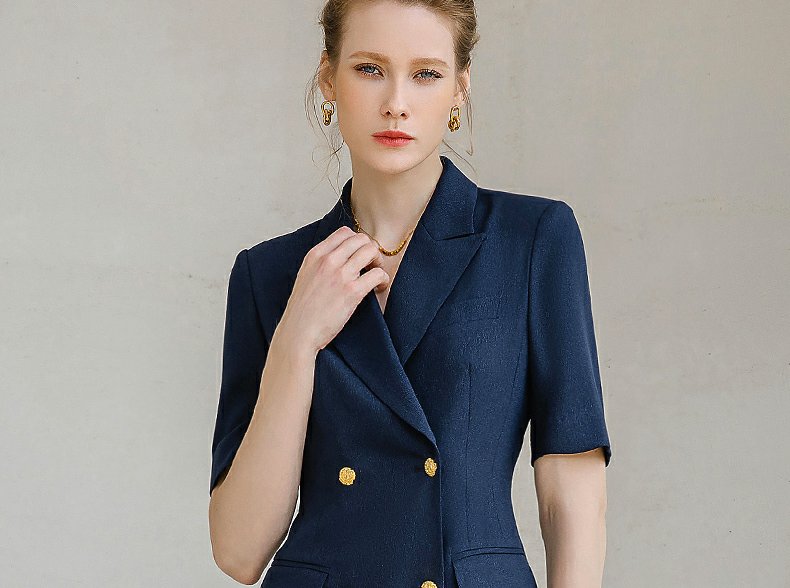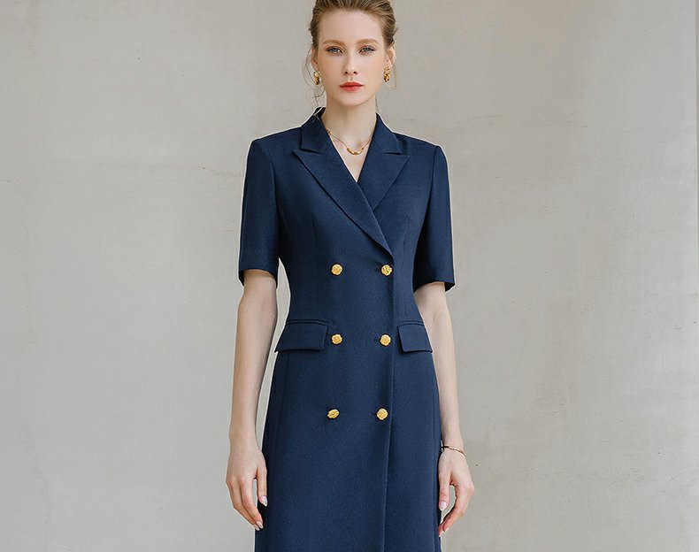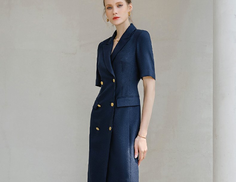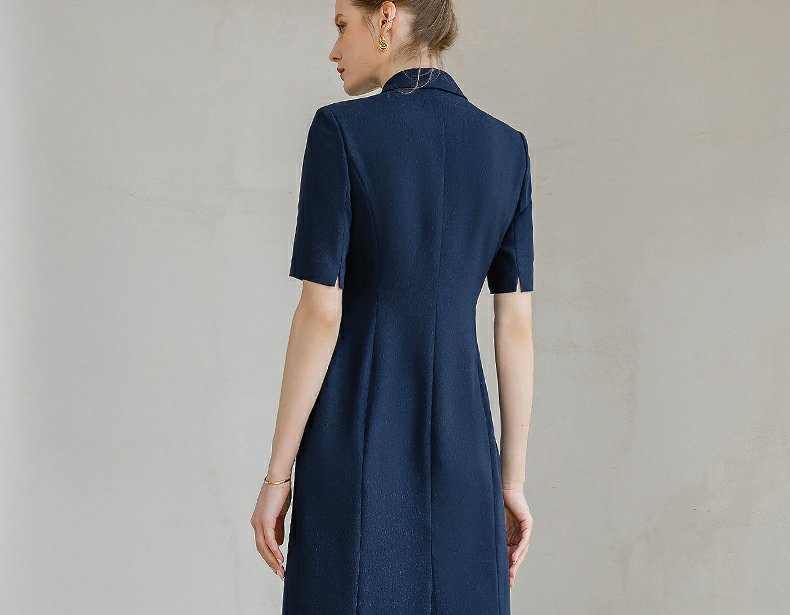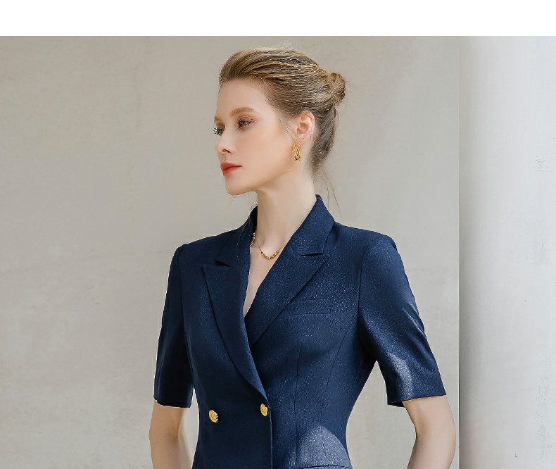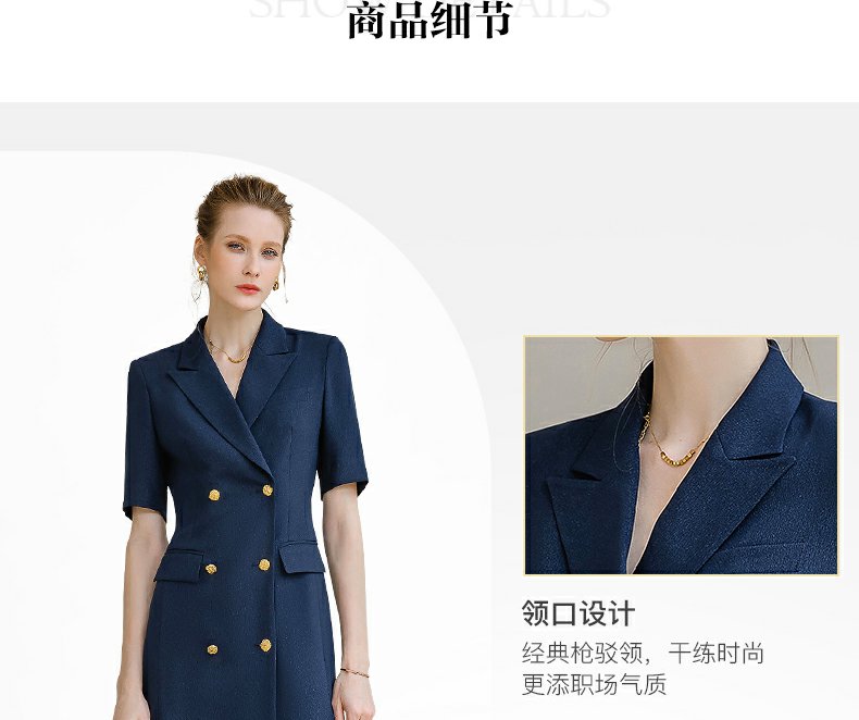 IWY/夏款薄款职业西装连衣裙女正式场合职业正装藏青色工作服通勤232030Q1