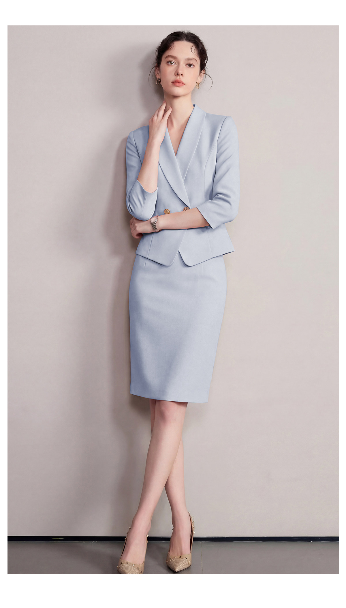 IWY/水蓝色新款女春夏七分袖气质西装裙子高知感高级感套装6CS37