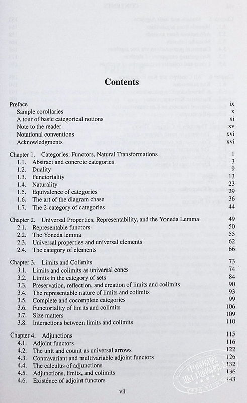 作者从范畴的角度出发,通过大量数学实例,说明范畴论的概念和构造是如何从更基本的数学思想中产生并照亮更基本的数学思想的。