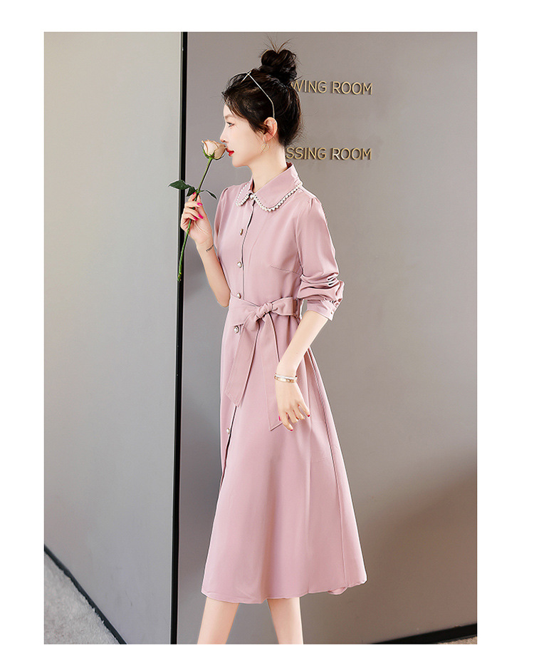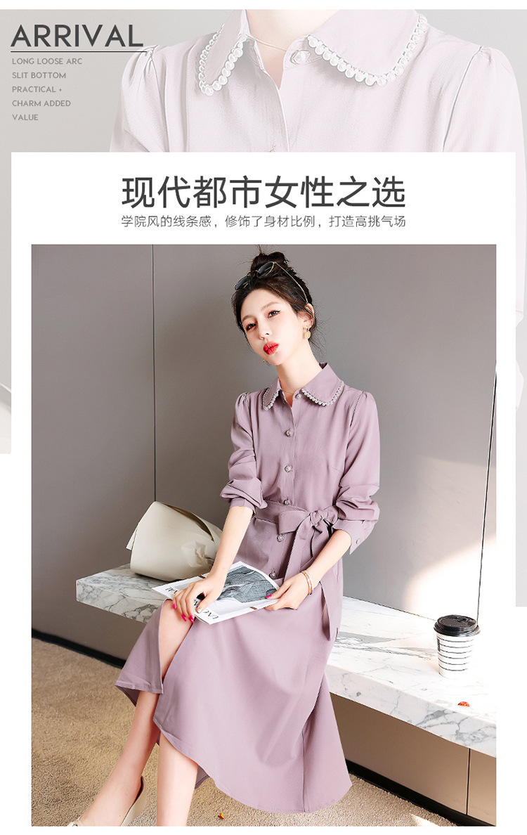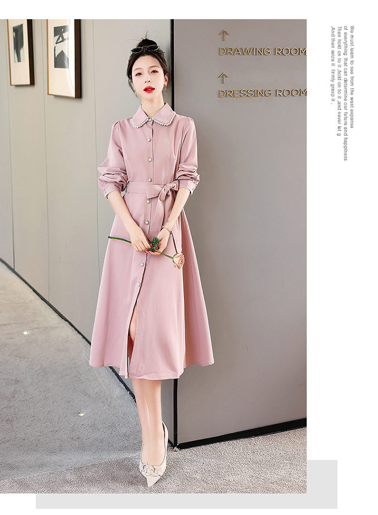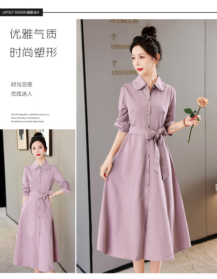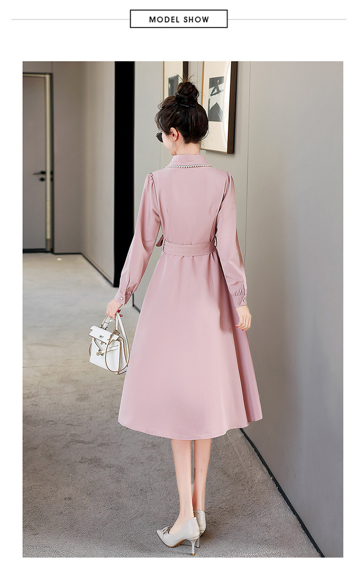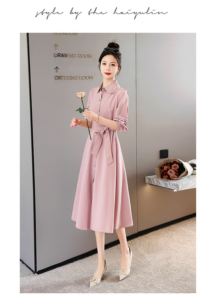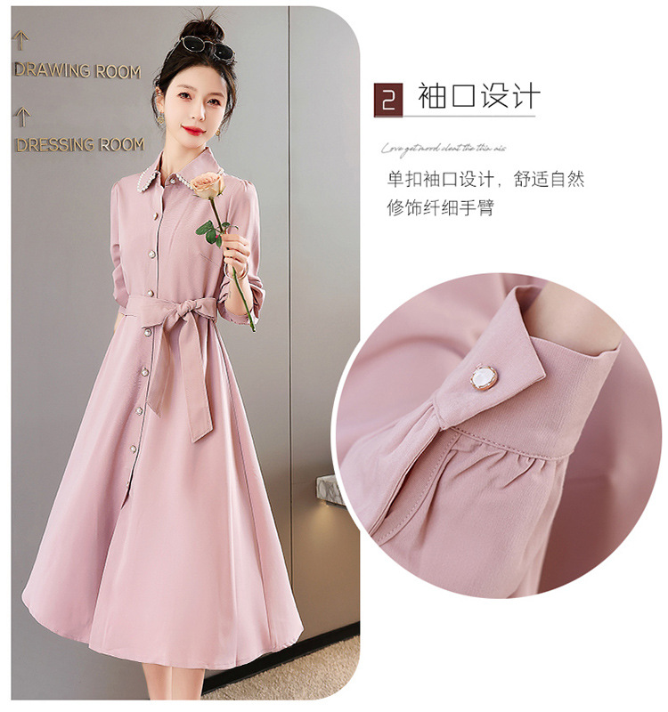 时尚潮流轻奢气质系腰带修身显瘦翻领钉珠连衣裙HR-HBLJRA203
