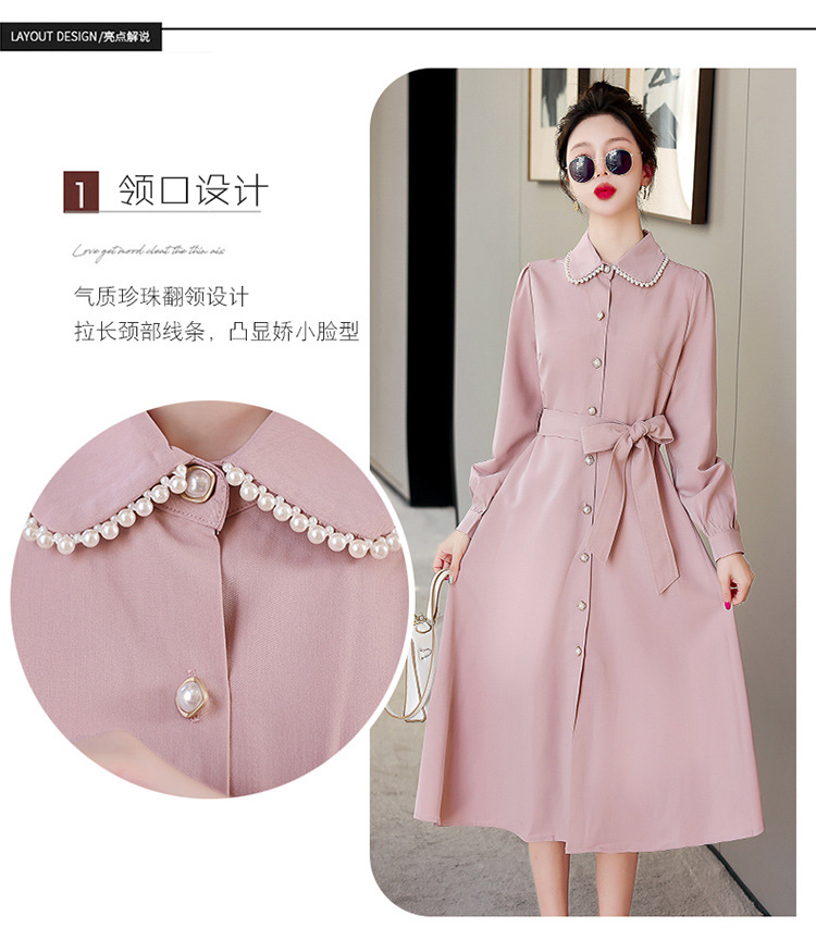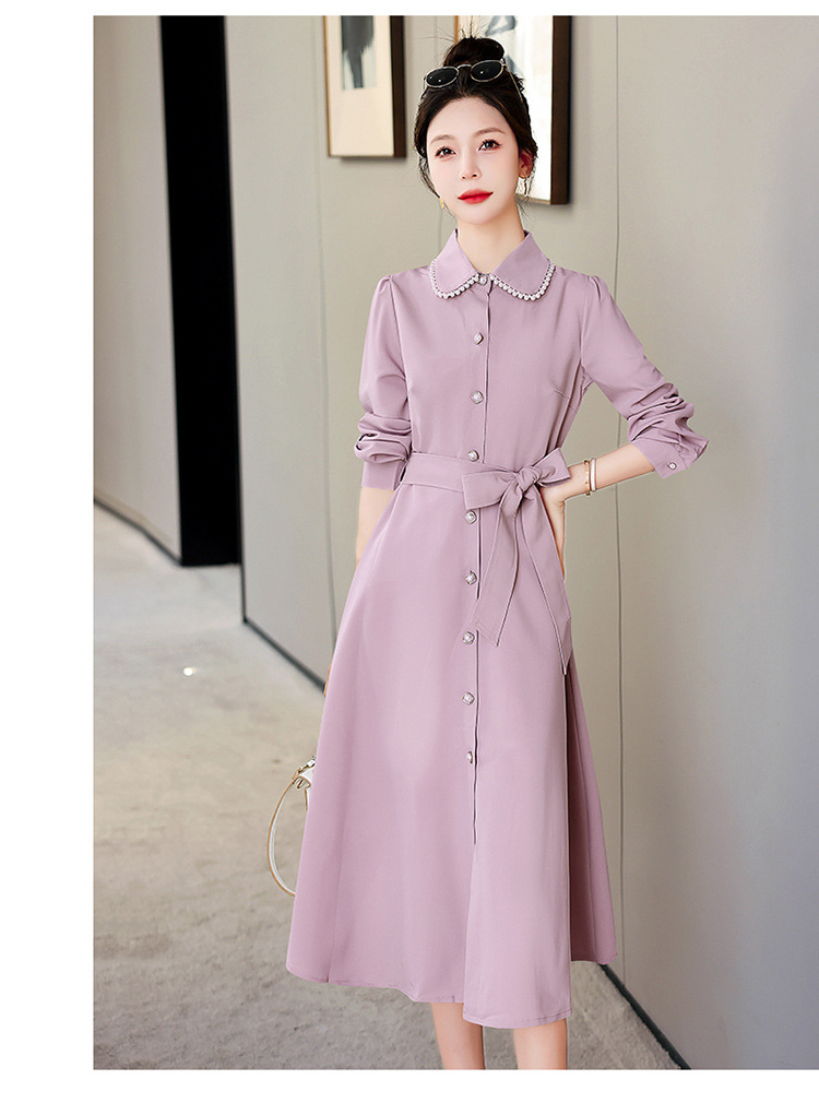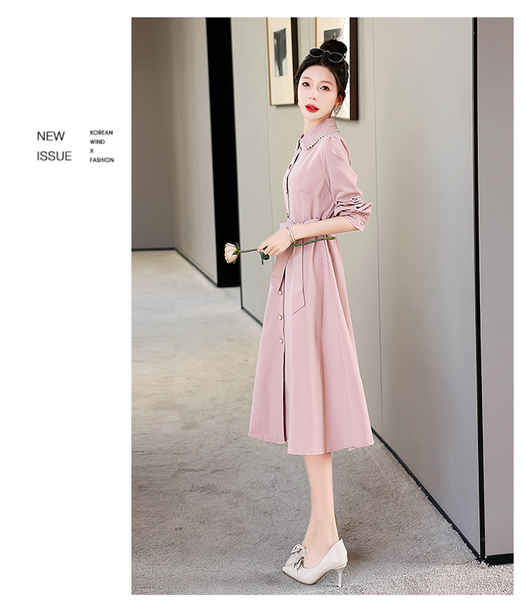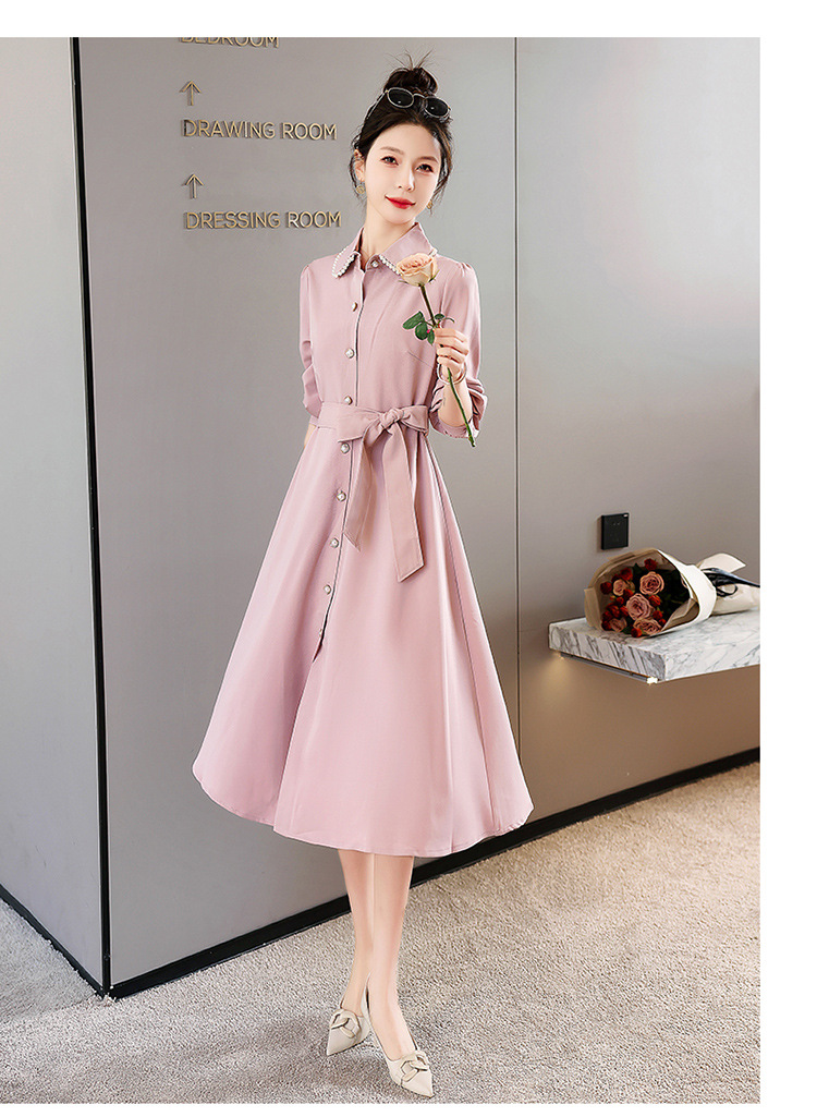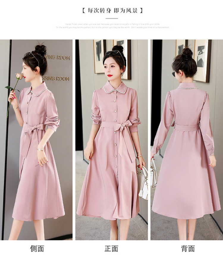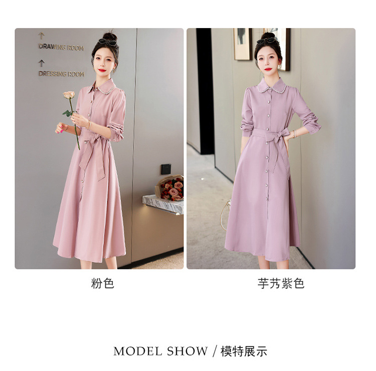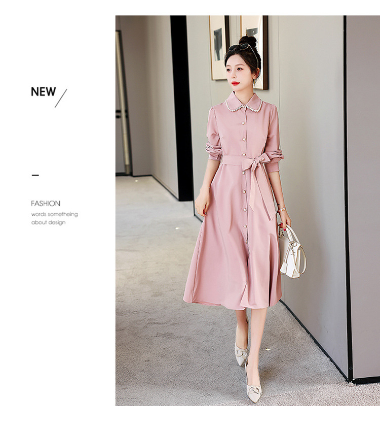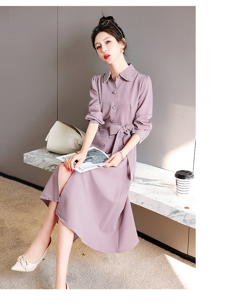 时尚潮流轻奢气质系腰带修身显瘦翻领钉珠连衣裙HR-HBLJRA203