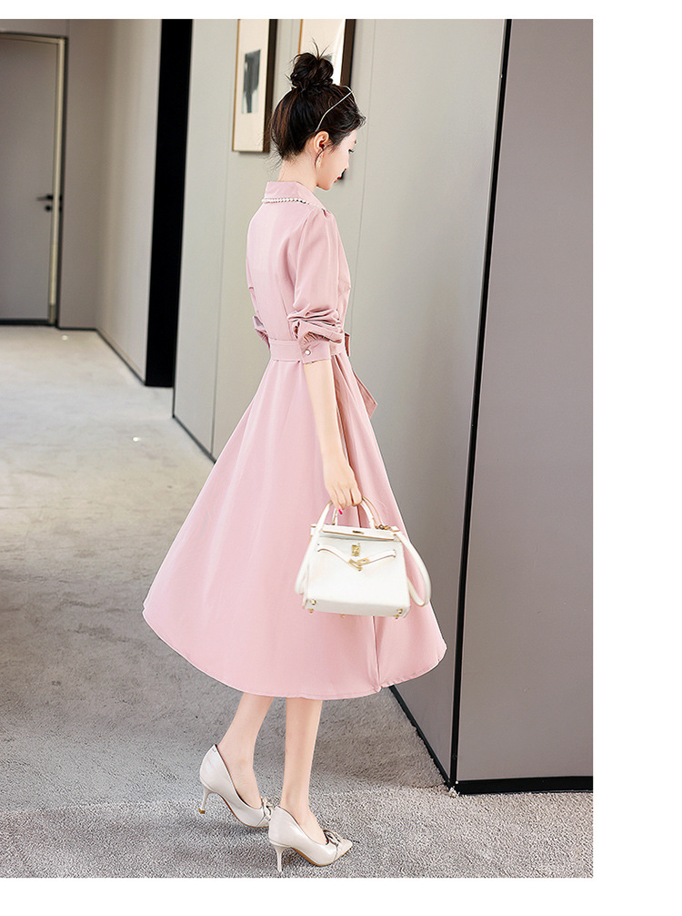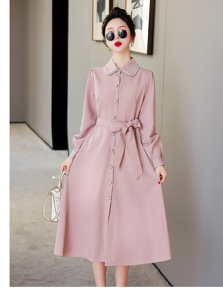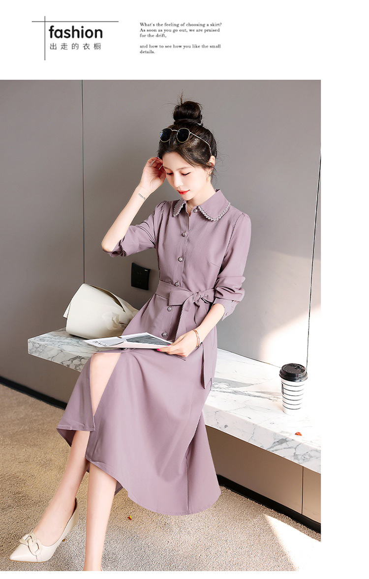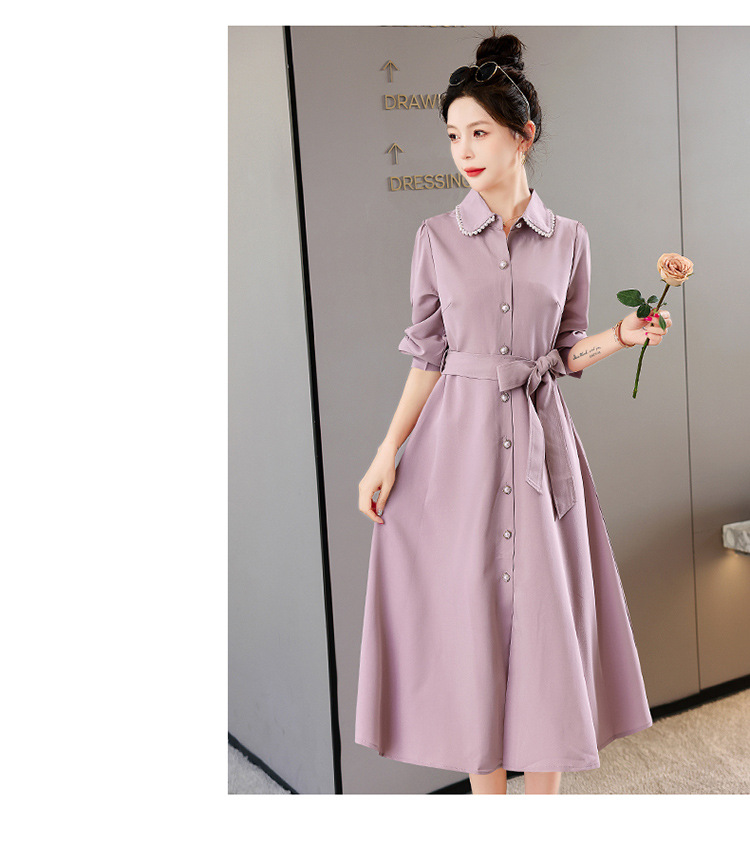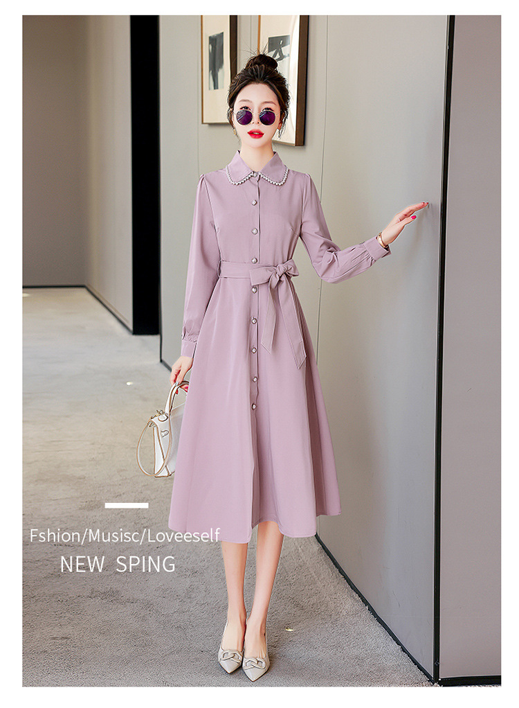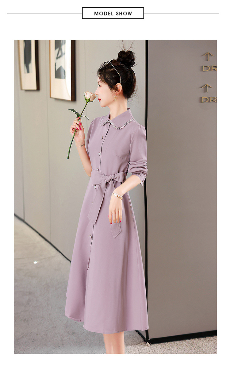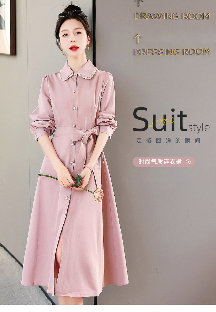 时尚潮流轻奢气质系腰带修身显瘦翻领钉珠连衣裙HR-HBLJRA203