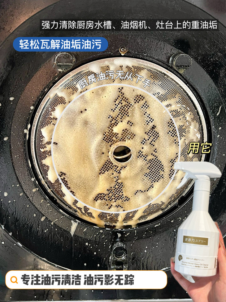 【酵素重油污清洁剂】喷上去立刻开始瓦解油渍,滴下来的全是油不是水啊,快速除油,深层去污, 多年老油垢都能轻松擦掉呢,而且不损伤电器表层,喷一喷擦一擦简单到不行,它是无磷配方不伤手!真的是家家必备的好物