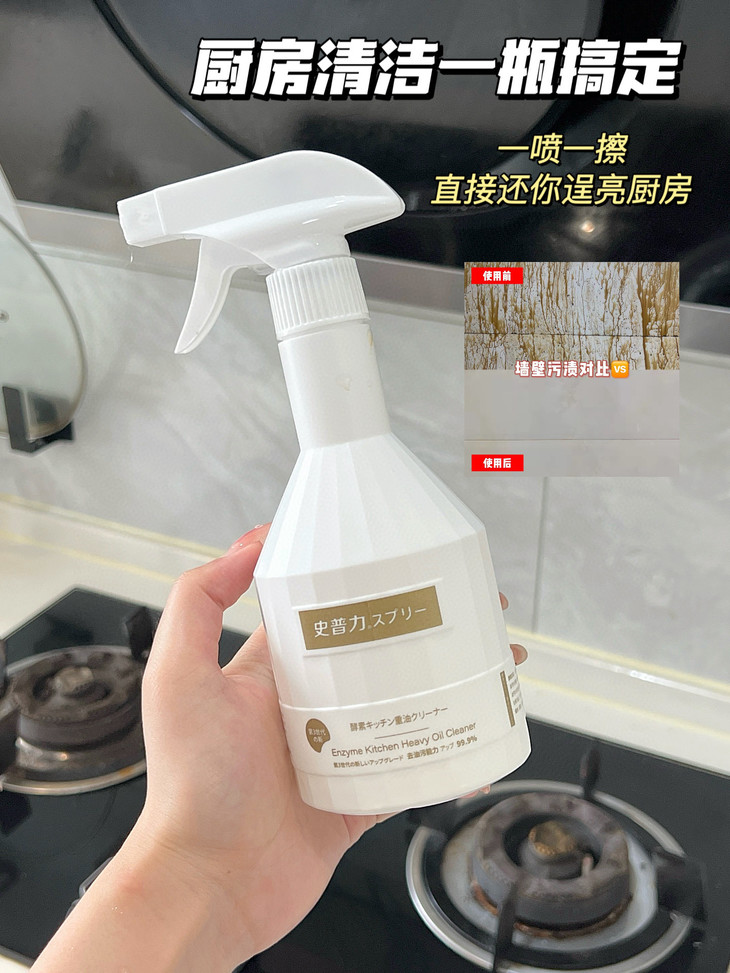 重油污克星来了!史普力第三代酵素重油污清洁剂,厨房油腻一喷消失!