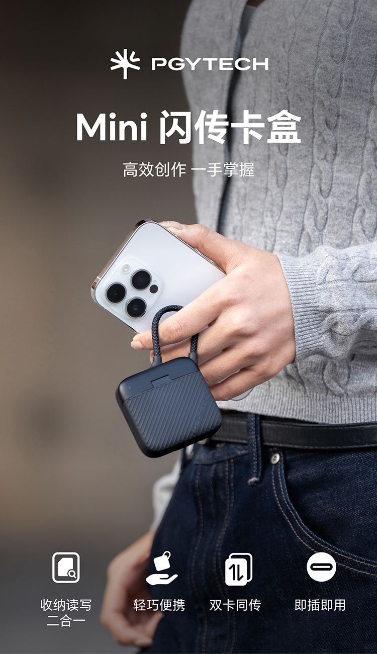 PGYTECH读卡器蒲公英Mini闪传卡盒sd卡tf读卡器4.0高速多功能合一平板电脑手机相机读卡器