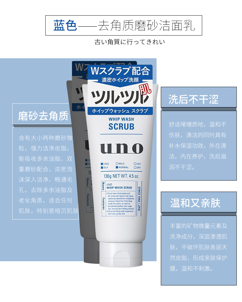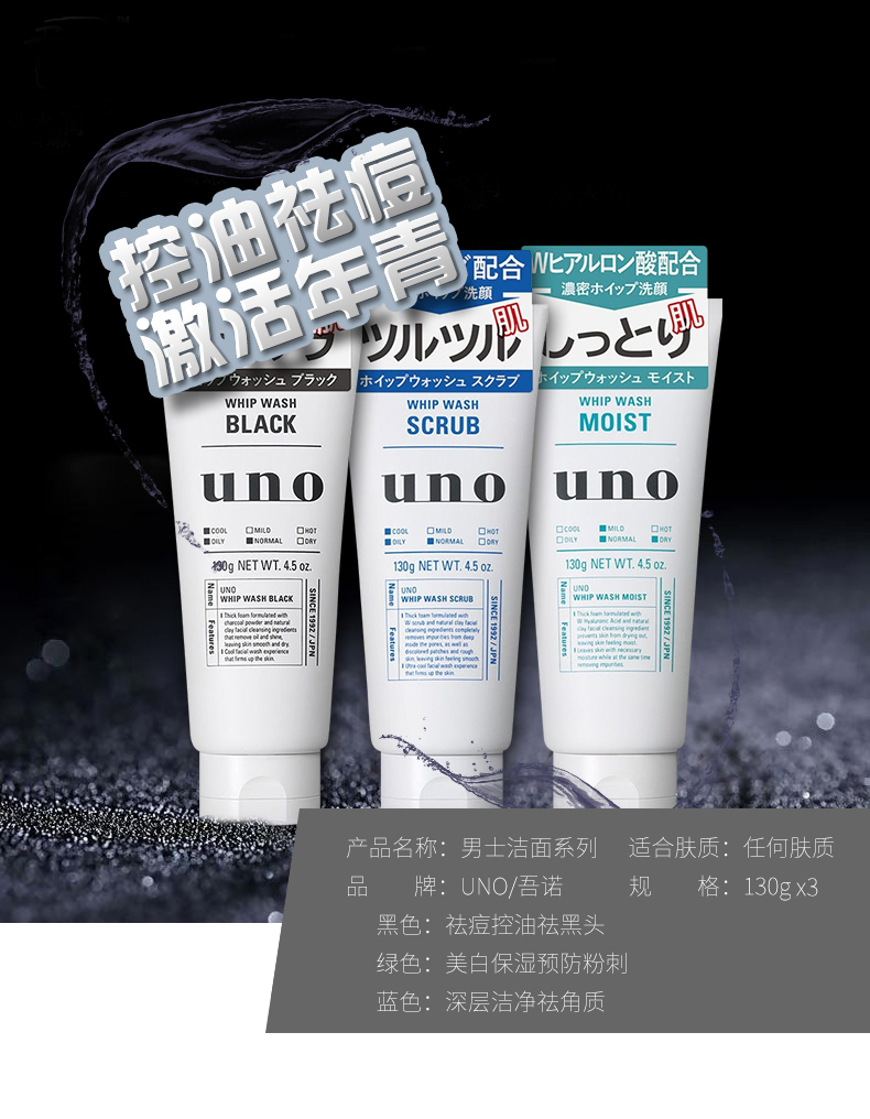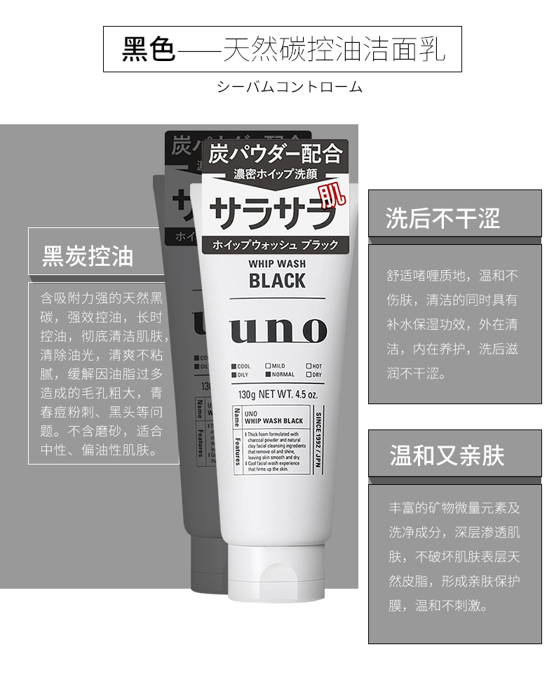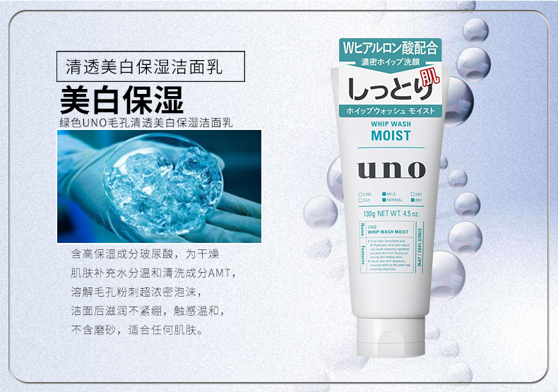 【香港直邮】日本资生堂UNO吾诺男士洗面奶130g 清洁毛孔控油保湿