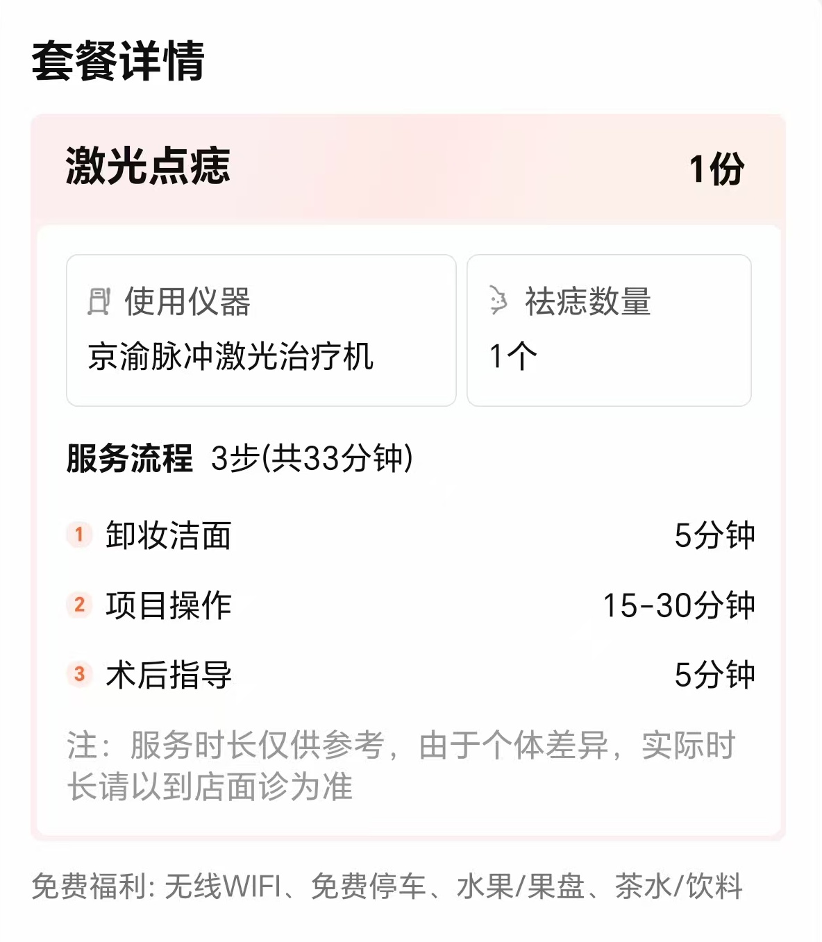 1、此价格治疗项目为:激光点痣单颗价(面积<2mm平痣);
