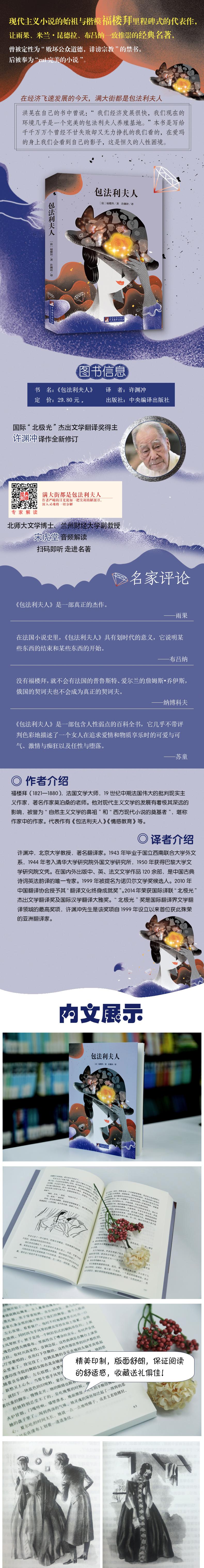 ●在经济飞速发展的今天,满大街都是包法利夫人 洪晃在自己的书中曾说:“我们经济发展很快,我们现在的环境几乎是一个完美的包法利夫人养殖基地。” 本书是写给千千万万个曾经不甘失败却又无力挣扎的我们看的,在爱玛的身上我们会看到自己的影子,这是恒久的人性困境。 ●独家音频解读,揭示故事背后的文学魅力 北京师范大学比较文学与世界文学专业博士,兰州财经大学副教授宋虎堂专业解读《包法利夫人》,为读者扫除阅读障碍,深入理解作品精髓。 ●国际译联“北极光 ”杰出文学翻译奖得主许渊冲经典译本 CCTV《朗读者》《开学第一课》嘉宾,国际译联“北极光 ”杰出文学翻译奖得主许渊冲教授译作。许渊冲先生从事文学翻译长达60余年,译作涵盖中、英、法等语种,被誉为“诗译英法大家”。 ●原版插图,精美装帧,版面舒朗,阅读舒适,收藏送礼俱佳!