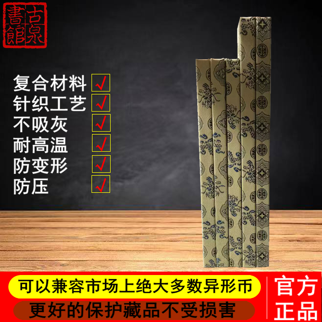 齐刀泉夹:适用于先秦齐国三字刀、四字刀、五字刀等的收藏和收纳,可很好的兼容各型的齐刀,不易从泉夹脱落,更好的保护钱币状态。 外尺寸长210mm宽90mm厚11.5mm孔深4mm