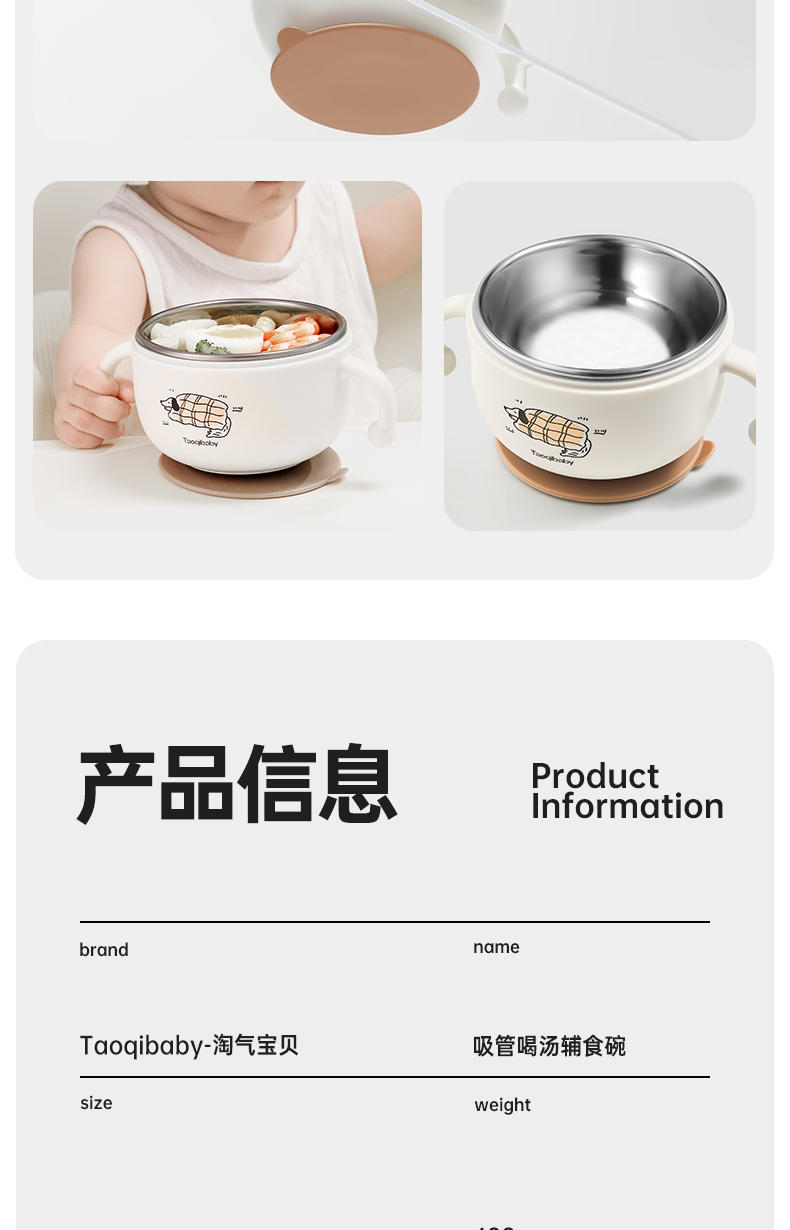【福利】taoqibaby淘气宝贝宝宝喝汤吸管碗婴儿辅食碗米糊杯专用不锈钢新生儿喂水