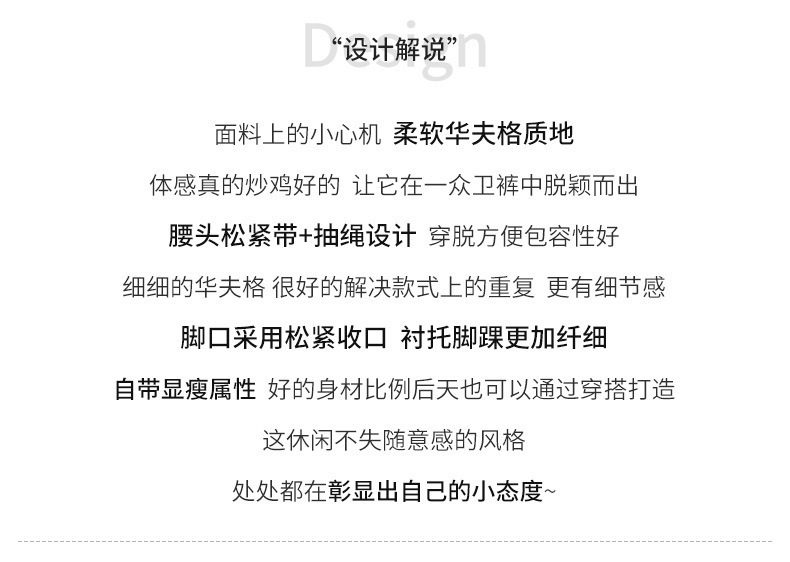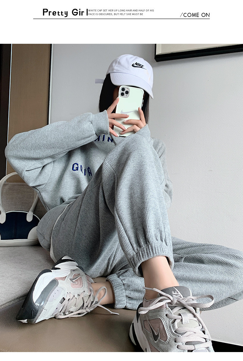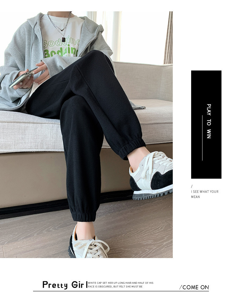 【炸街好物 潮流卫裤】华夫格卫裤 时尚百搭 精选面料 柔软质地 松紧带腰头抽绳设计 运动时尚感 穿脱方便 束脚显瘦 经典百搭