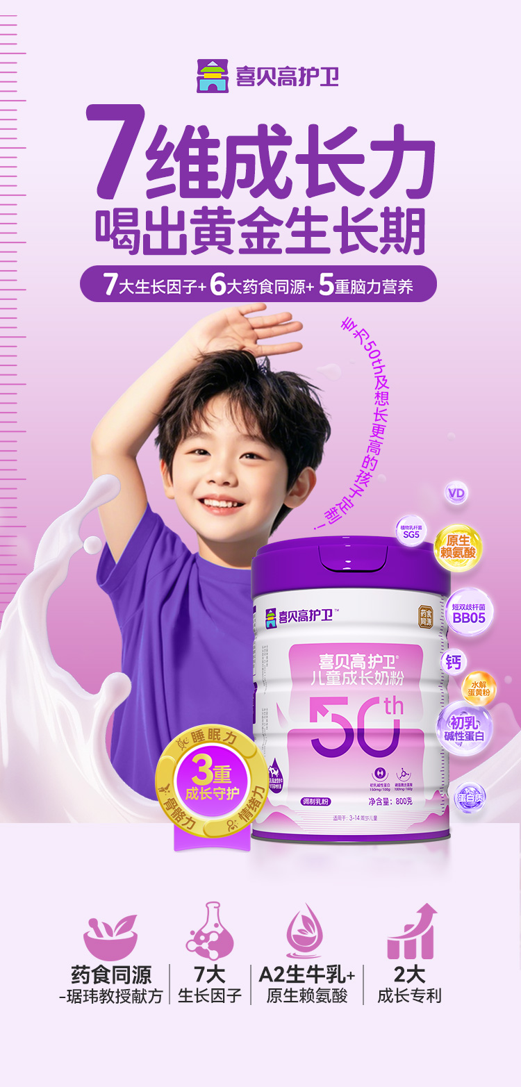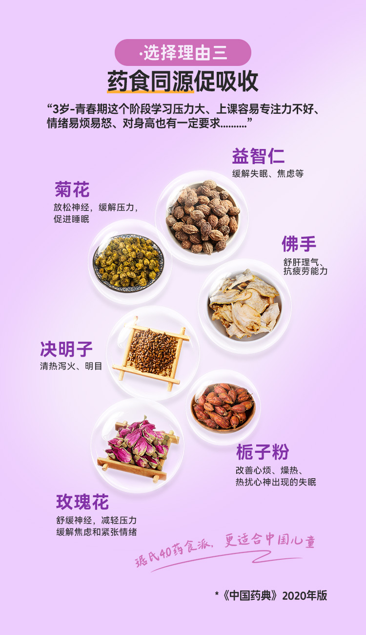 适合想要维持身高、长得更高、学习压力大、注意力不集中、睡眠不好、易烦易怒的3岁以上孩子。