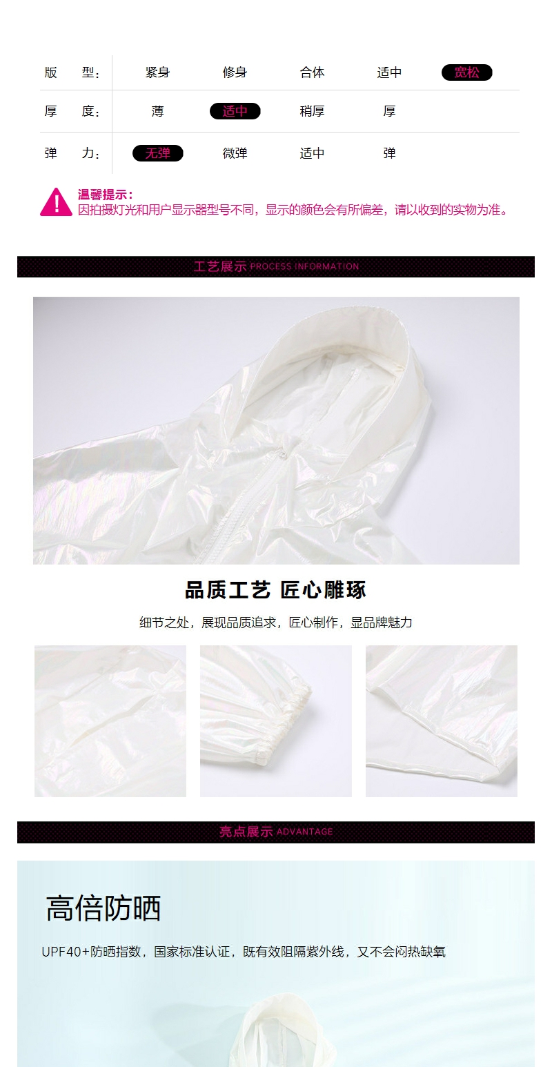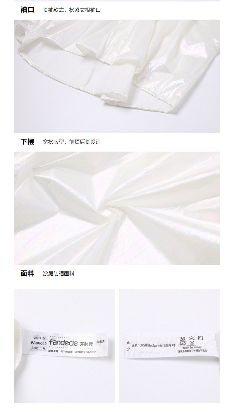【直发】芬狄诗新款宽松珠光色潮感防晒服女弧形帽檐SPF40防晒衣FA00042