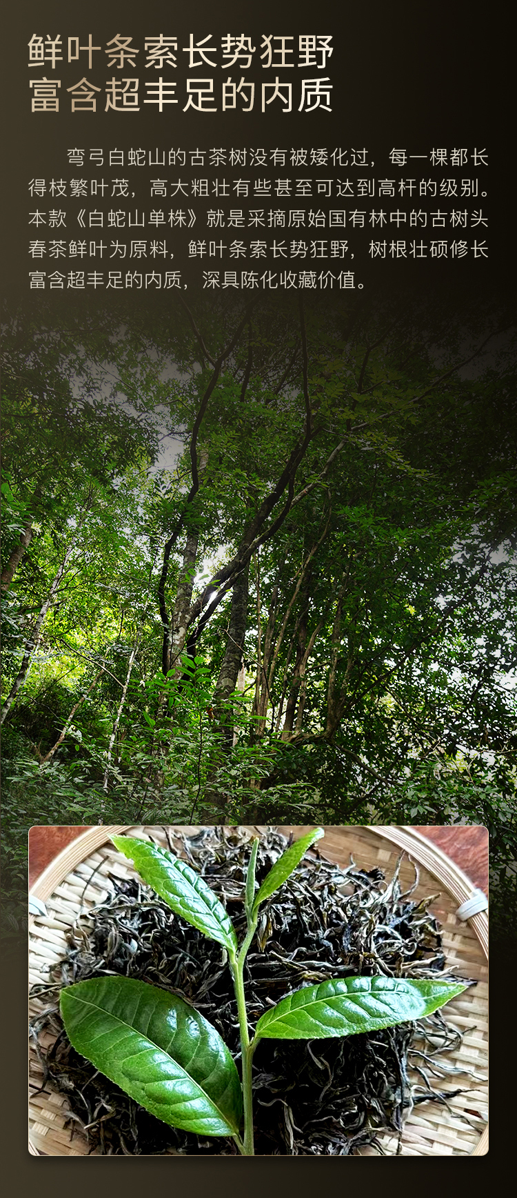 【白蛇山单株】易武弯弓原始森林顶层生态单株,稀缺超微产区,尝新快人一步;全程守株守茶,保真保纯!357克/饼